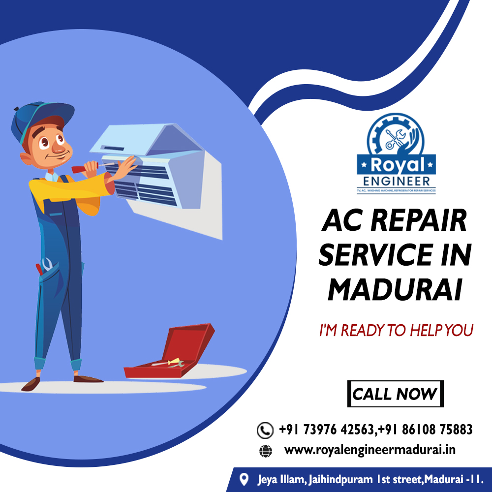 If you are searching for the best AC repair service in Madurai, click this website www.royalengineermadurai.in or contact us at +91 73976 42563, +91 86108 75883.