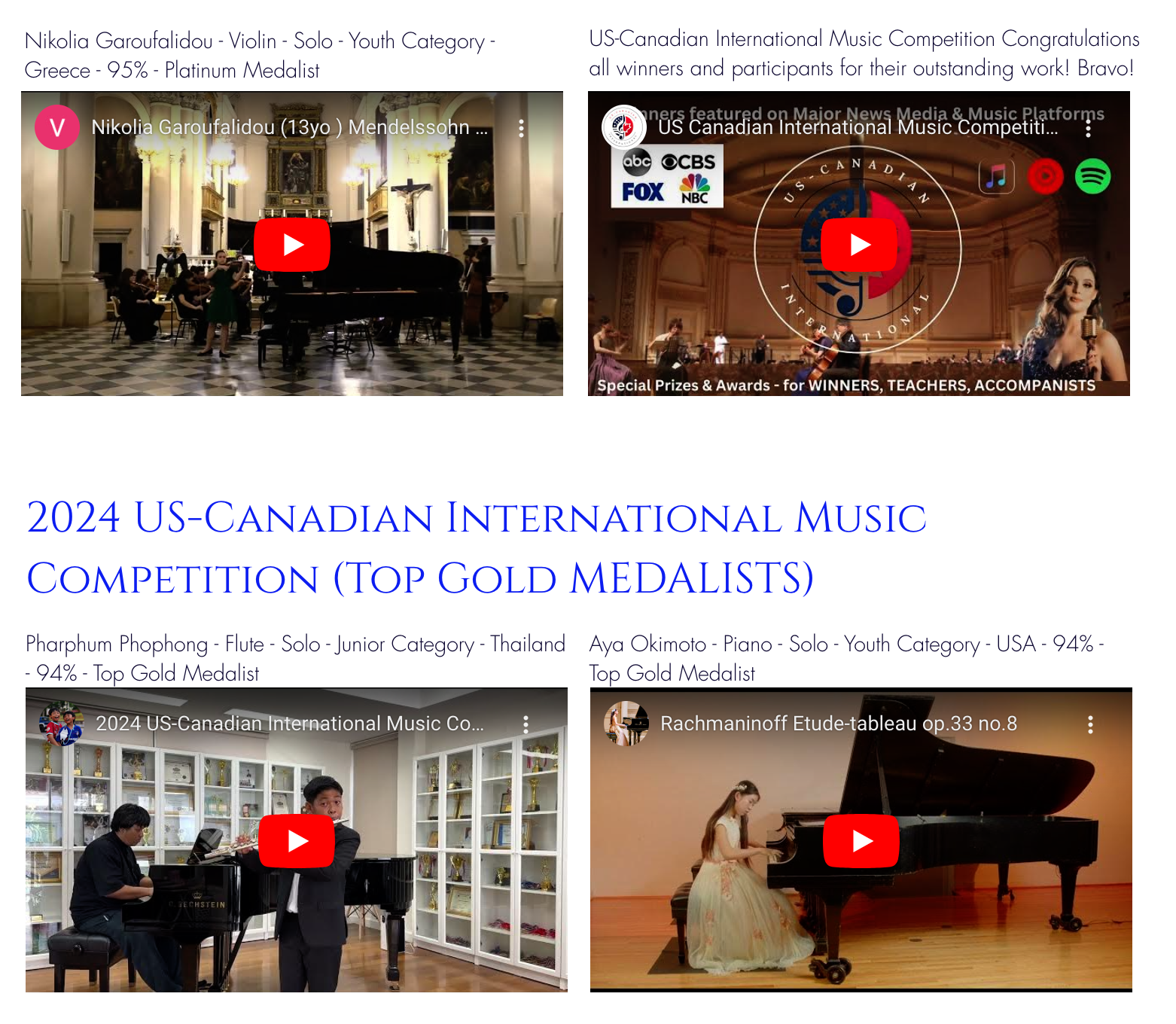 The US-Canadian International Music Competition is thrilled to announce the winners of its inaugural competition. This groundbreaking event brought together musicians from around the world, ranging from young prodigies to seasoned professionals, in a celebration of musical excellence.