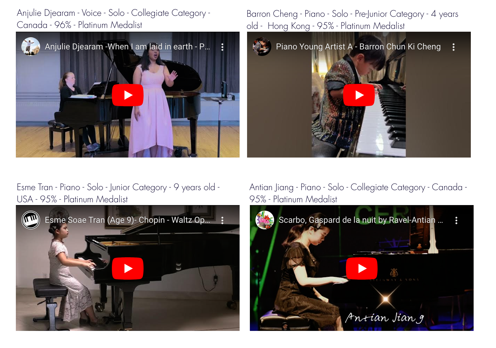 Your exceptional performances have been a source of inspiration, captivating the hearts and minds of our esteemed jury members. We hope that this experience has ignited within you a renewed sense of motivation and inspiration, propelling you forward on your musical journey. May you continue to strive for excellence, using your art as a means of self-expression and artistic exploration.