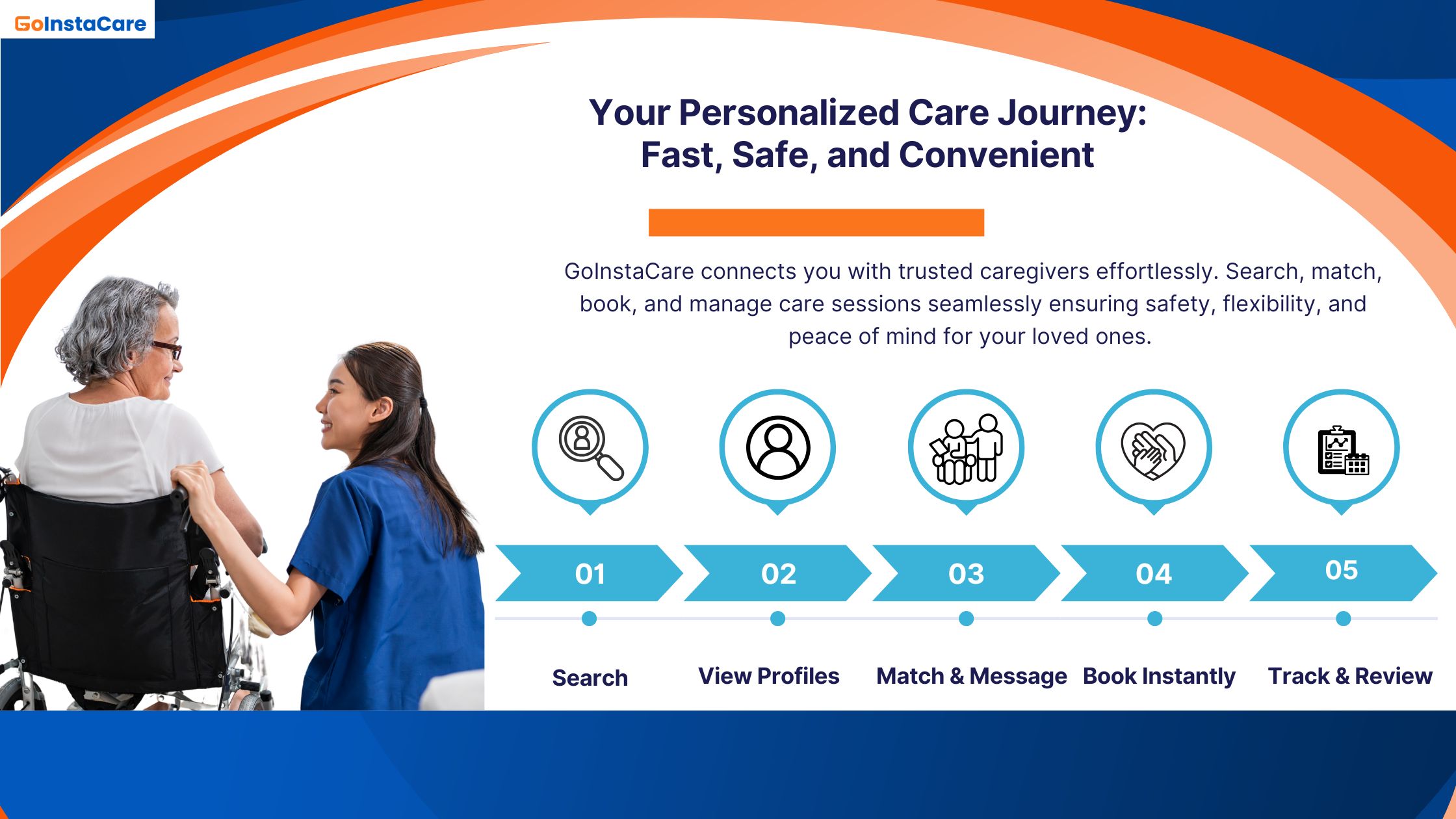 GoInstaCare was launched with a vision to fill this void by offering a tech-enabled platform that gives control back to care seekers. Its unique model allows users to instantly browse caregiver profiles, connect through secure in-app messaging, and book care professionals in minutes, without long wait times or costly agency markups.