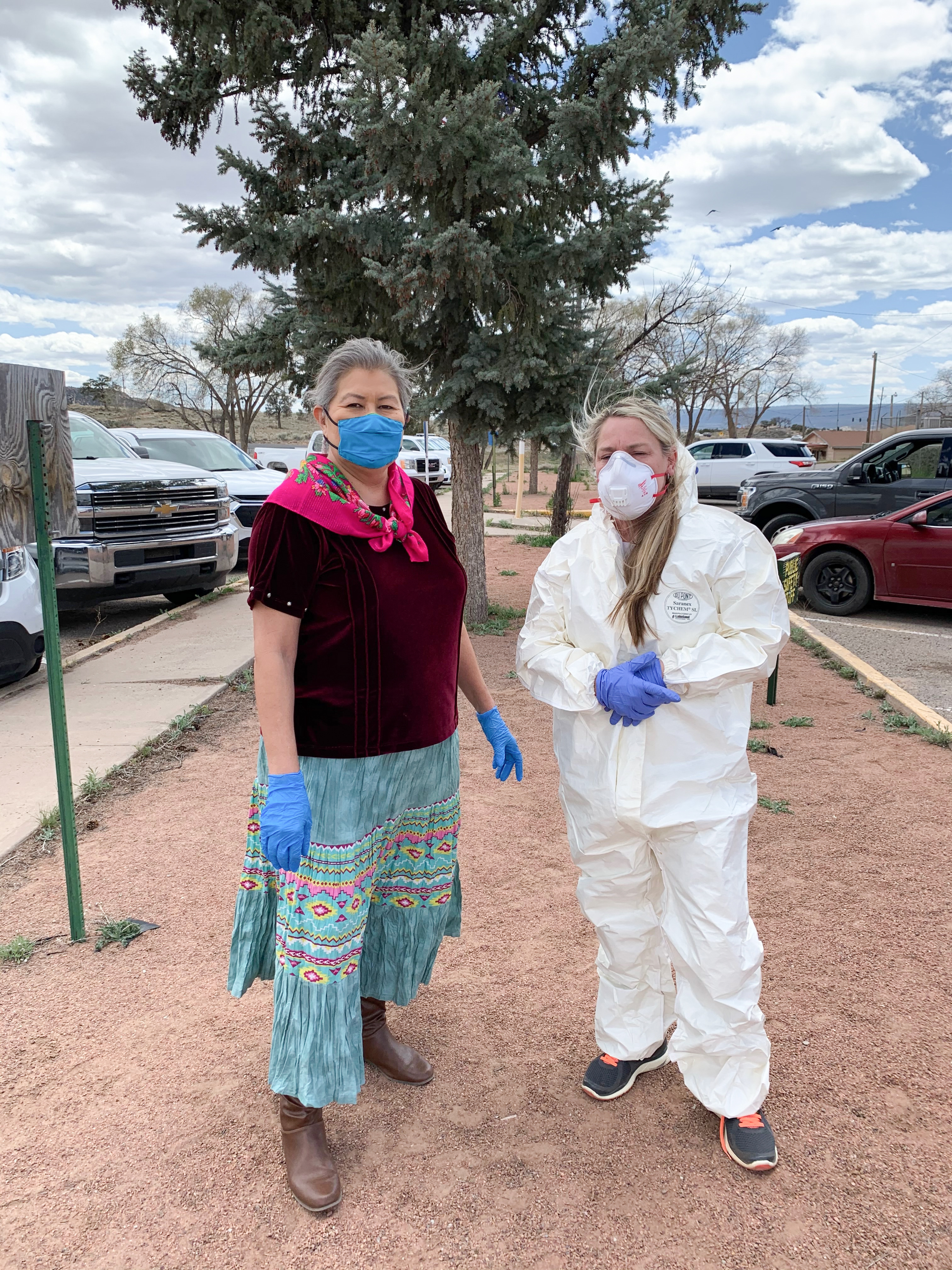 The Foundation worked with Blok to pick up in Mobile, Ala, and drive to the reservations in Northern Arizona to distribute to Gallup, New Mexico where suits were distributed to Navajo Area Indian Health Services (NAIHS) servicing five NAIHS hospitals. The next stop was the Navajo Division of Public Safety in Window Rock, AZ, to provide suits for police, correction officers, emergency medical technicians, and paramedics.