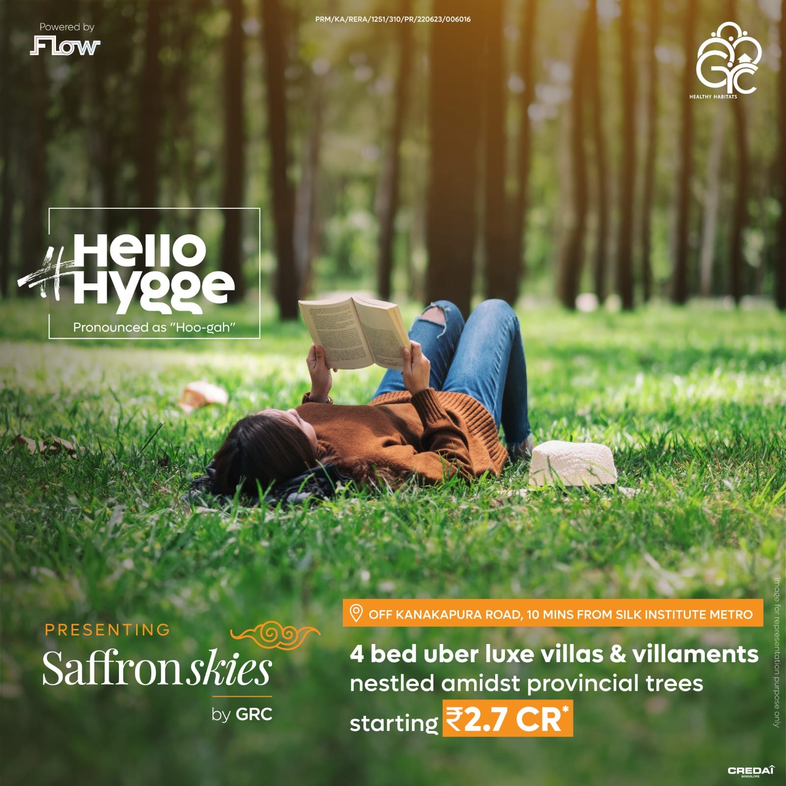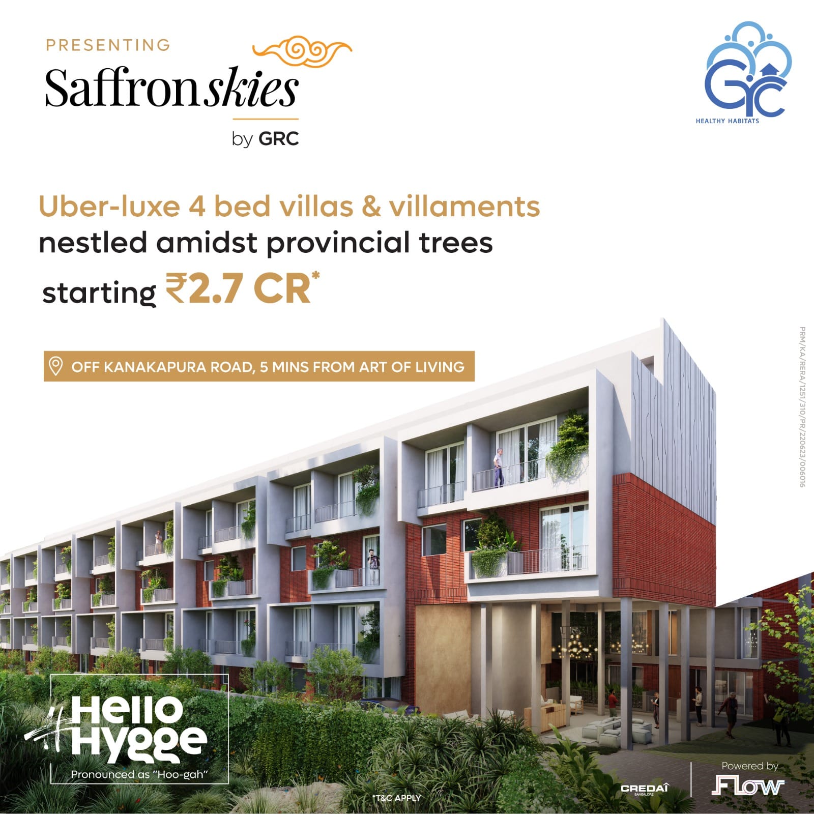 Bangarapet, Karnataka Aug 5, 2023 (Issuewire.com) - In a significant stride towards redefining luxury living, "GRC Saffron Skies" announces its grand entrance into South Bangalore City's real estate landscape. This prestigious villas project is poised to introduce an unparalleled level of elegance, comfort, and modernity to the region.