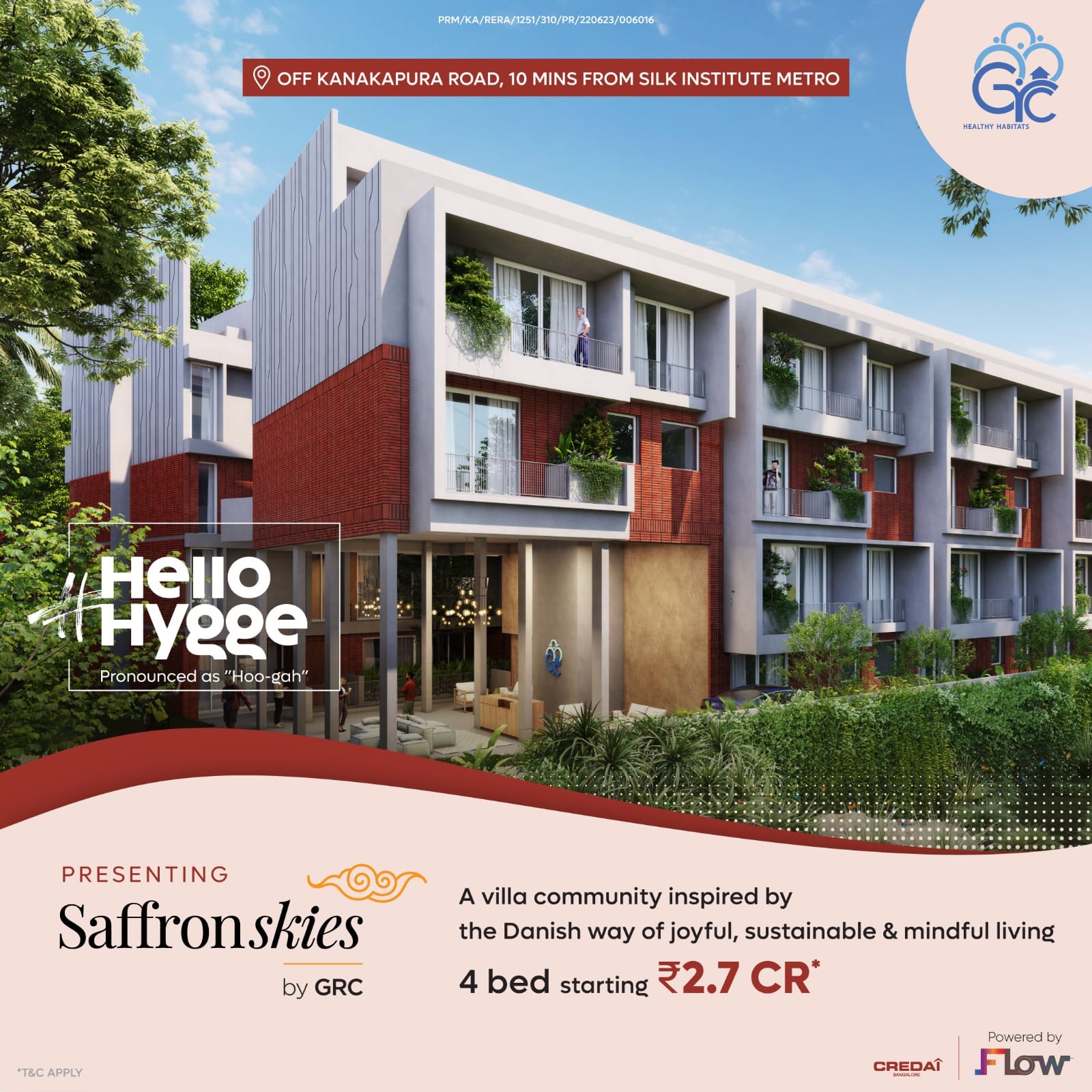 "We are proud to introduce 'GRC Saffron Skies' to South Bangalore City, a project that embodies our commitment to delivering excellence in every aspect," commented Rajesh Sir, CEO at Grc infra pvt ltd. "Our vision is to create a haven that exemplifies luxury, convenience, and community."