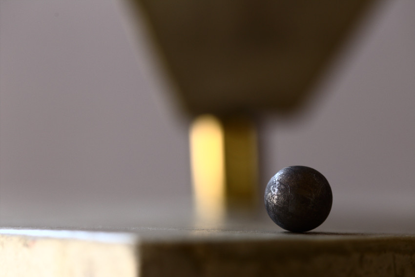 In this work of art Cesare Catania wanted to concentrate all the strength of the elements considered to be of greater energetic impact: the inverted pyramid and the sphere, the marble dust coming from the Earth and the meteorite fragments coming from the Universe.
