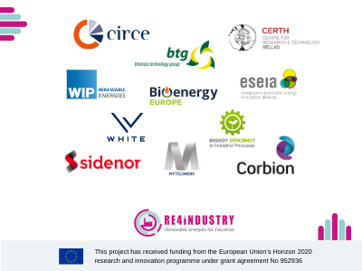 Composed of 11 partners, the consortium will ensure a wide European geographical coverage in order to guarantee extensive engagement of external stakeholders and wide dissemination of project results. The companies and organisations have carefully selected to cover a specific role: 5 technological and social experts (Fundación CIRCE, BTG Biomass Technology Group, CERTH, WIP Renewable Energies, White Research), 3 renewable energy-oriented associations (Bioenergy Europe, Energy Efficiency in Industrial Processes, European Sustainable Energy Innovation Alliance) and 3 energy-intensive industries (SIDENOR, MYTILINEOS, CORBION).