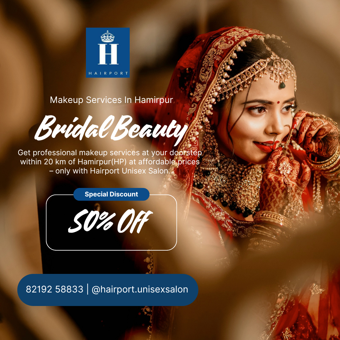 When searching for a Beauty Salon Hamirpur for weddings, parties, or festive events, clients turn to Hairport Unisex Salon. Their professional bridal makeup services are specially designed to highlight natural beauty while ensuring a flawless, long-lasting look. From pre-bridal treatments to final-day styling, Hairport provides complete bridal care packages that make every bride feel confident and radiant on her big day.