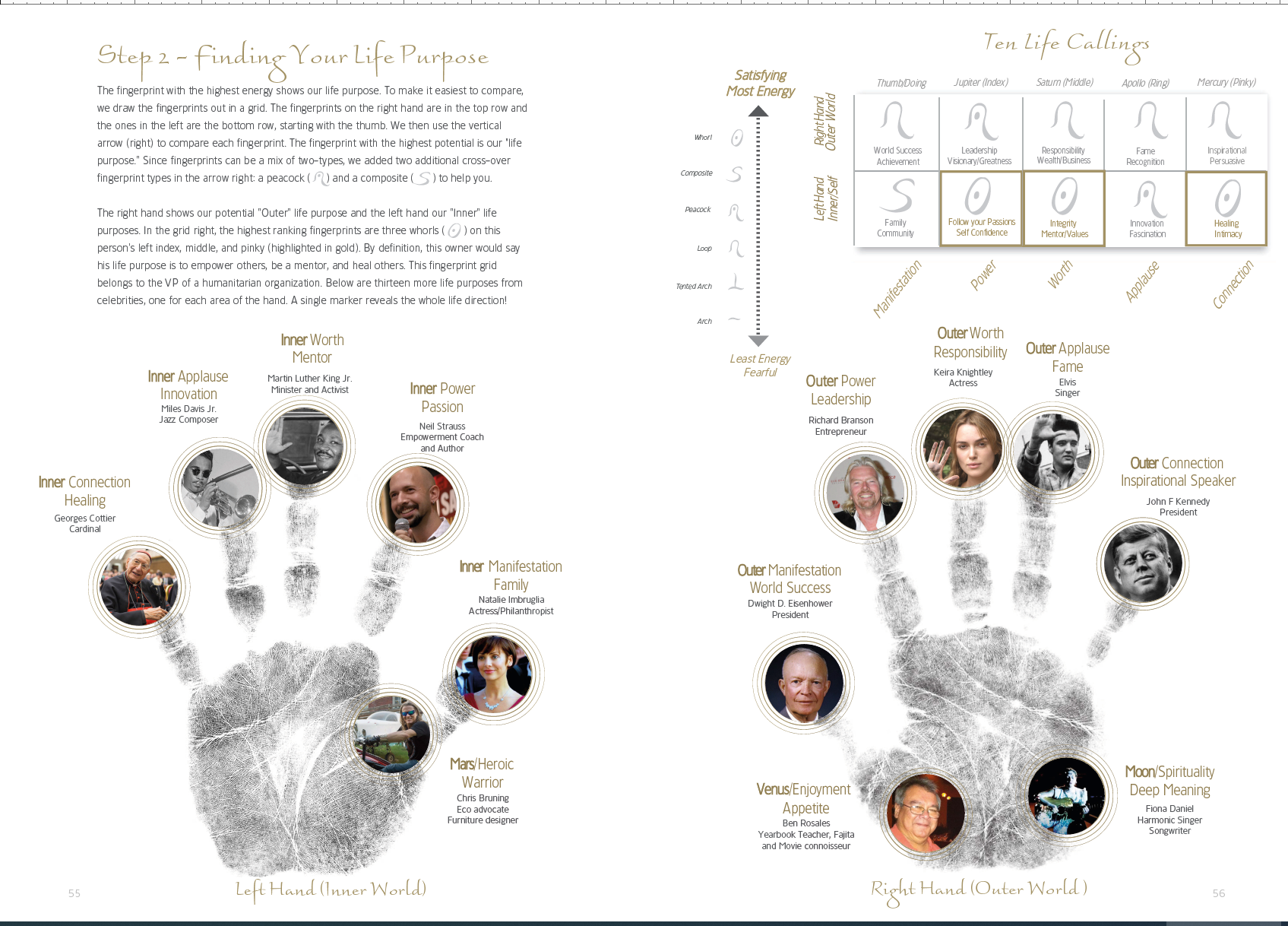 Bruning has studied the fingerprint patterns of the world’s most remarkable individuals, including actors Russell Brand and Keira Knightley, singer and songwriter Beyoncé, and even the Theological Adviser to the Pope. Important research, his work, which features in his latest book The Power In Your Hands, demonstrates that our life’s purpose and its meaning in life is biologically shown as an epigenetic pattern in the hands.
