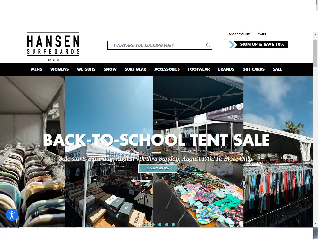 Come and experience the ultimate shopping event in Encinitas. Visit Hansen's Surf Shop during the annual back-to-school tent sale and enjoy the ride of shopping in a fun environment with friends and family. Make memories that will last a lifetime.