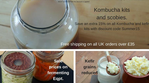 Offering 15% off all kombucha kits and scabies, anyone interested in receiving the discount, must simply enter code summer15 when checking out.