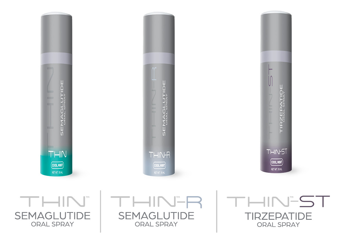 THIN™ is the first oral semaglutide spray for people who’ve used semaglutide and/or tirzepatide for weight loss and are ready for a maintenance plan that doesn’t require needles, refrigeration and can be used anytime, on the go, as an appetite suppressant. There are three current versions, THIN™, THIN™-R and THIN™-ST available.