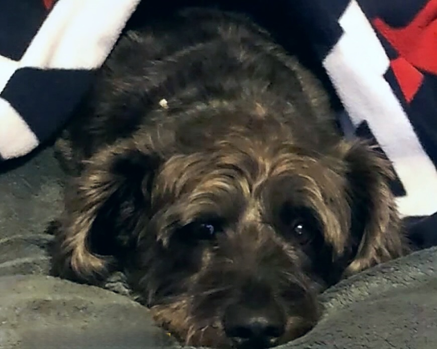 He is a scruffy, dark-colored, medium-to-large sized male dog, wearing a black collar with a flea collar zip-tied to it, and he is microchipped. Lucky may or may not have a red leash, and was reported to weigh around 55 pounds or so.