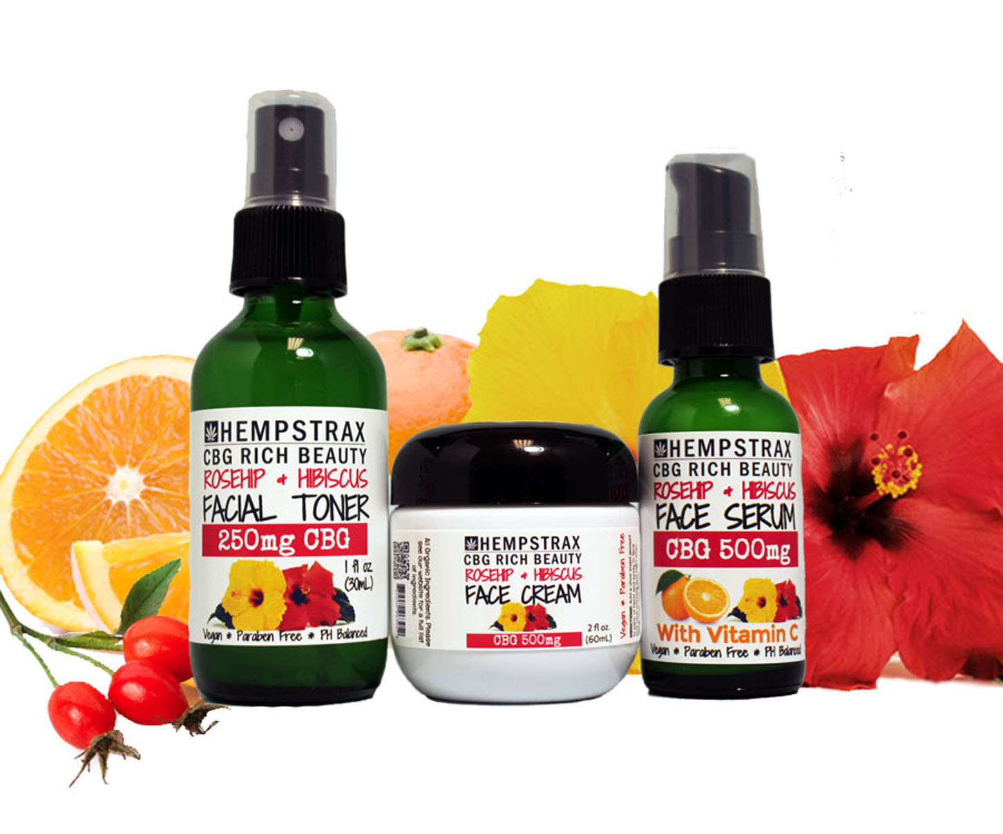 Hempstrax has launched its new CBG Skincare Line. The line consists of a Rosehip & Hibiscus facial toner, moisturizer, and serum. It's all organic and vegan. Later this month they will be launching a Blood Orange, Walnut Facial Scrub and a Lavender Body Butter.