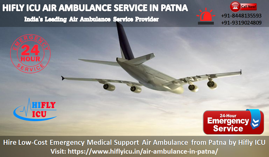 Patna, Bihar Feb 24, 2020 (Issuewire.com) - Get instant and easy access to high-tech emergency medical facilities and services Hifly ICU Air Ambulance in Patna with exceptional charter and commercial plane to shift the very serious patient from a location to another, 24x7 hours. Hifly ICU Air Ambulance provides comprehensive advanced and affordable low-cost medical amenities in Patna and in almost all the major cities of the country. Hifly ICU Air Ambulance Service in Patna serves very efficient air medical services in other cities such as Kolkata, Delhi, Mumbai, Ranchi, Bhopal, Indore, Raigarh, Allahabad, Gorakhpur, Muzaffarpur, etc. at a low-cost so that no people of the society hesitate to avail our advanced Air Ambulance Service and rescue their loved one’s life.