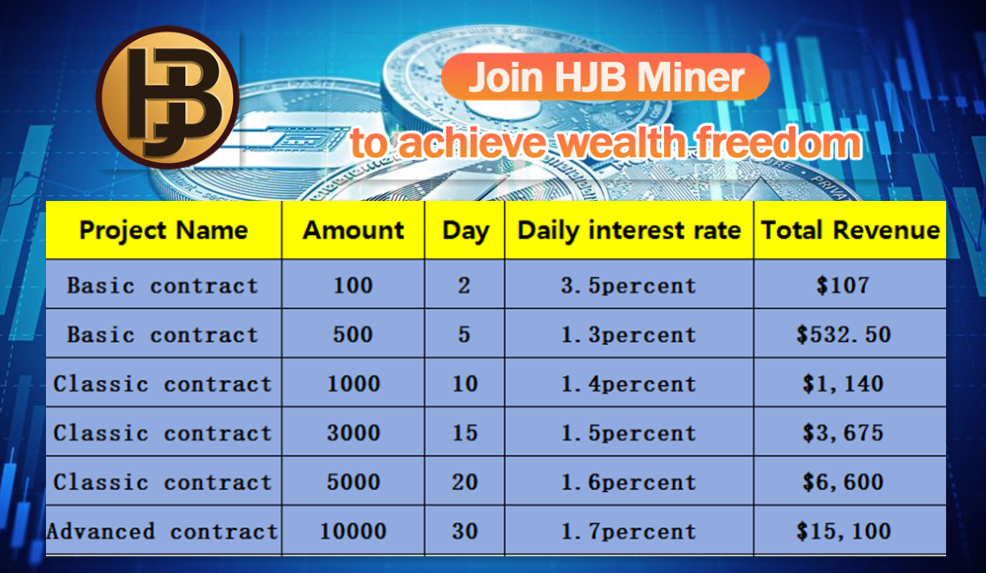 Blockchain, smart contracts and digital currencies are revolutionizing the global financial system. HJB Miner is at the forefront of this change. Early adopters have participated in this movement to redefine the world's value, income and opportunities. The future of finance is no longer exclusive to the elite, but is open to everyone who is willing to embrace innovation.