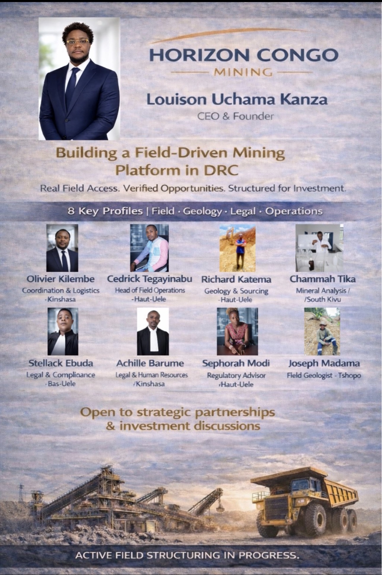 Kinshasa, Democratic Republic Of The Congo Apr 19, 2026 (Issuewire.com) - Horizon Congo Mining, a participant in FasterCapital’s Equity Pilot program, has officially entered its active field validation phase, marking a decisive transition from project structuring to real on-ground execution across strategic mining regions in the Democratic Republic of the Congo (DRC).