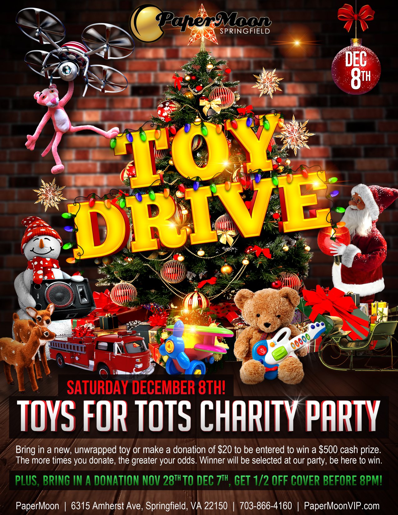 PaperMoon, a gentlemen’s club and community fixture in Springfield, Virginia, is excited for the opportunity to give back to their community. On Saturday, December 8, 2018, PaperMoon is holding a party to collect toy donations for Toys for Tots. Guests can bring in a new, unwrapped toy or donate $20 or more to be entered to win a $500 cash prize. The more donations a guest provides, the higher the odds of winning. The winner will be selected at the party, which will be held from 9 p.m. to midnight and must be present to win.