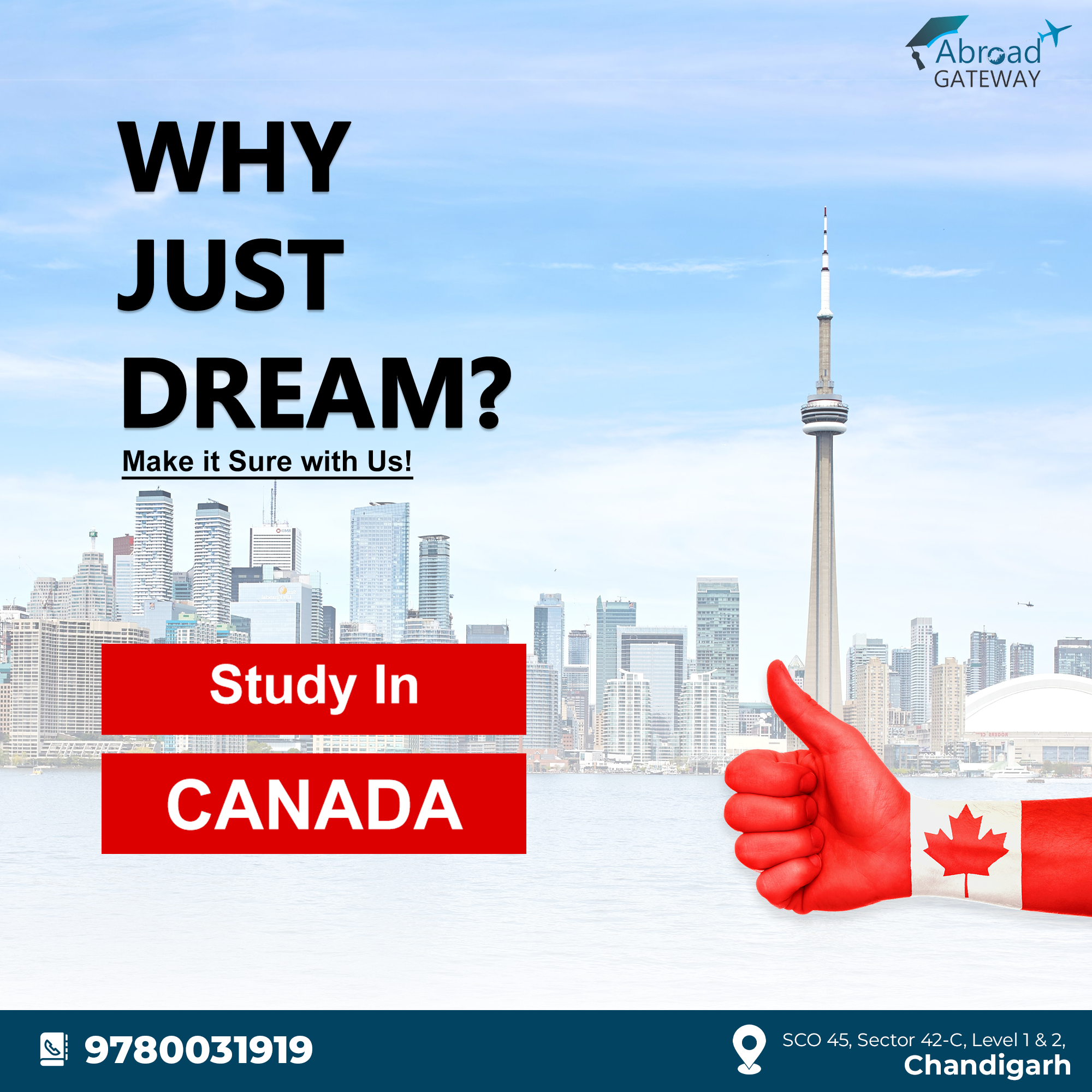 In conclusion, studying abroad in Canada is a rewarding experience, but the study visa application process can be complex. By choosing Abroad Gateway as your study visa consultant, you can ensure a smooth and successful journey toward your educational goals in Canada. Abroad Gateway's expertise and personalized approach will guide you through every step of the process, from selecting the right course and university to obtaining your study visa and settling into life in Canada. With Abroad Gateway by your side, you can embark on your study abroad journey with confidence and peace of mind.