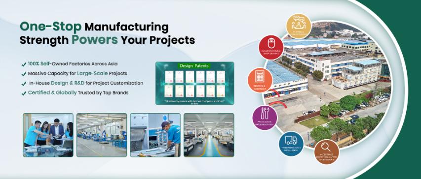 The foundation of Express Garden’s approach is a detailed consultation and engineering design phase. In this stage, the team gathers comprehensive information about the client’s project, including expected foot traffic, climate conditions, maintenance requirements, spatial layouts, and the overall design concept. This understanding allows the company to propose furniture solutions that align with both functional and aesthetic requirements while withstanding the specific environmental conditions of each project site.