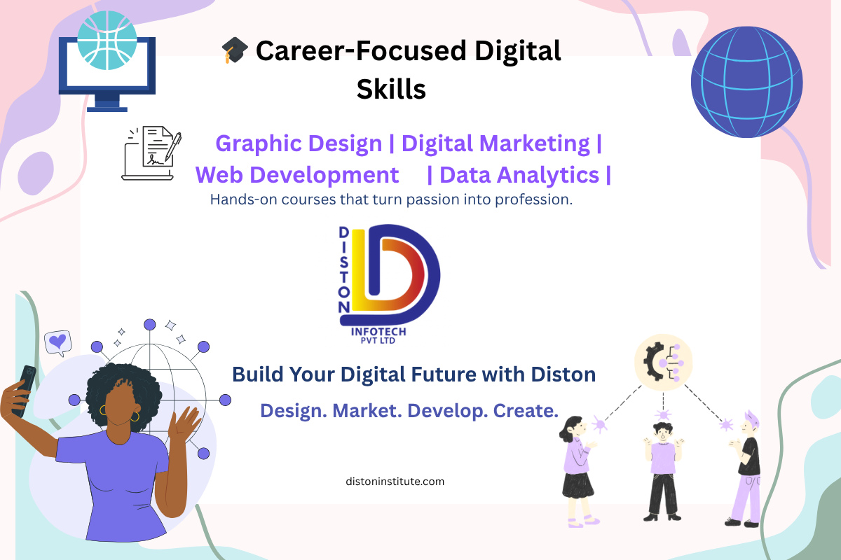 Diston Institute is a career-focused digital skills academy based in Dehradun, Uttarakhand, dedicated to transforming learners into confident, income-ready professionals. Since its launch, Diston has trained hundreds of students in high-demand fields, including: