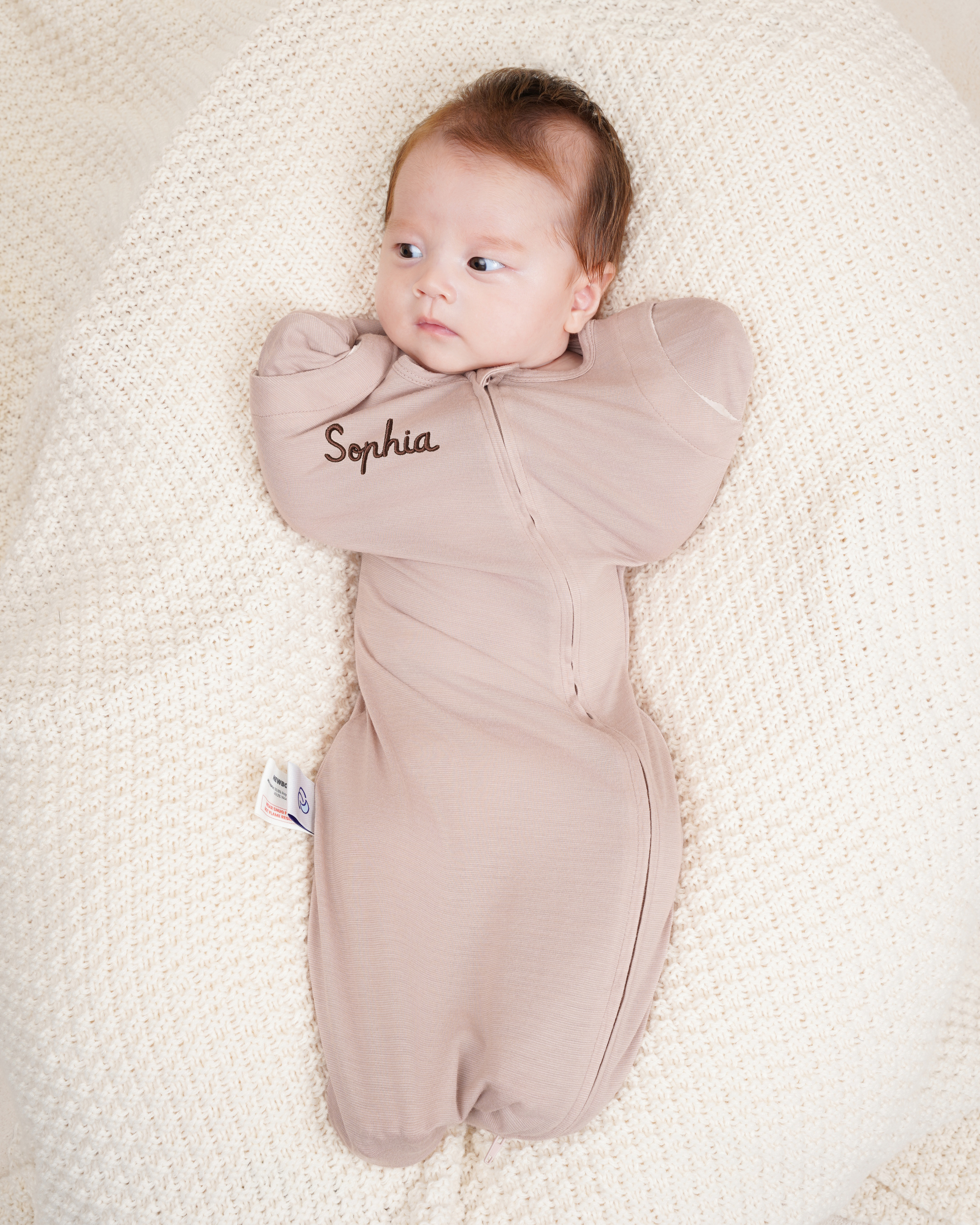 The swaddle creates a safe and comfortable space for babies to rest, supporting a secure arms-up position that allows natural movement while helping babies feel calm and supported.