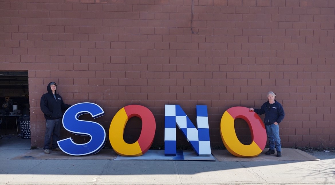 Norwalk, Connecticut Mar 26, 2021 (Issuewire.com) - Harbourside SoNo, a new 6 story 129-unit luxury apartment community, that opened for occupancy in January of 2021, is celebrating the hanging of its iconic SONO wall sculpture featuring four letters that are each 5 feet tall and 4.5 feet wide, spanning over 40 feet in vertical height. This custom art piece was designed by the project developer, Thomas L. Rich, and fabricated by John Malagisi and his team (pictured below) of Sign Design, Inc. Mr. Rich stated that...“I was bothered by the height and width of what would have been a large blank north-facing wall along Water Street where windows were not an option and it struck me that it would be an ideal location for an iconic art installation. The final design not only identifies the neighborhood but the colors and patterns on each letter correspond to their nautical alphabet signal flag counterpart giving a nod to the area's long time maritime history.” Mr. Rich further added...”I hope it becomes an iconic image for Norwalk much like the CITGO sign near Fenway Park in Boston or the famous DOMINO SUGAR piece which for almost a century was a dominant feature along the East River in the Williamsburg section of Brooklyn, NY facing Manhattan”.