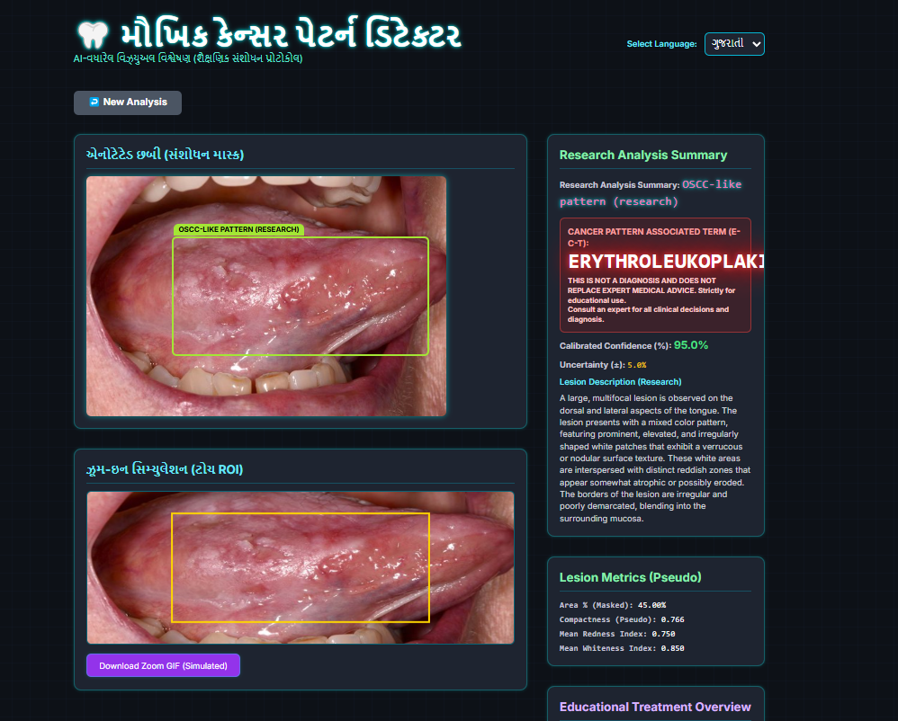The project, created under the research and education initiative AI for All, uses a machine learning model trained on oral lesion datasets to recognize potential precancerous patterns with high accuracy. The system aims to assist dentists, students, and healthcare workers in both rural and urban India by enabling quicker screening through a simple image upload interface.