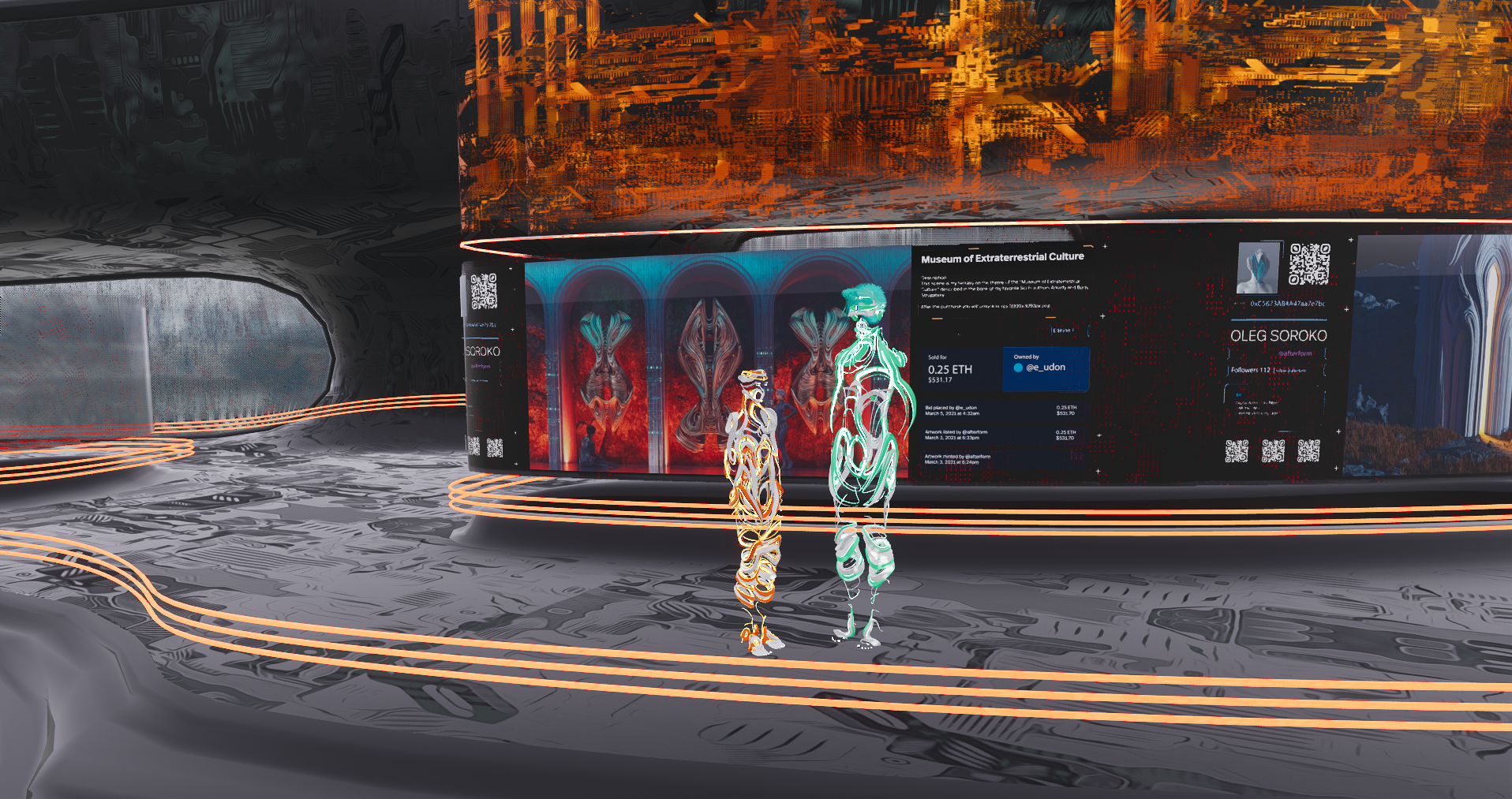 The second category of metaspaces is one of the most important. Architects are experts in organizing social functions within space, and therefore the designing of metaspaces also needs architects to lead that process. Most of the current existing metaspaces are replications of existing physical spaces, with light fixtures, wood panels, structural columns, and other components that are not necessary for the metaverse. ILLUSORR is rethinking everything, down to the very ontology of the metaverse. Designing a new conception of a store for brands, new gallery and exhibition experiences, new concert halls and venues for large gatherings, new auditoriums, new outdoor environments, new teleportation, and navigation interfaces, all of these had to be rethought using first principles, and completely reinvented for a new type of metaverse experience.