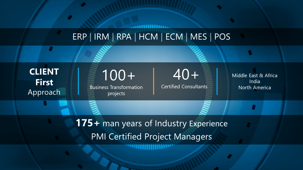 Index InfoTech, with a consultative approach, ensures that the businesses go digital in their processes and transforms the way they work with the latest technology. We deliver precisely designed solutions and services through our expert solution consultants. Index InfoTech Consulting team leverages their solution expertise, industry expertise and their proven methodologies adopted over the years to deliver solutions that are flexible, tangible and meeting industry standards. With our clientele in the Manufacturing, Distribution, Oil & Gas, Healthcare, Real Estate, Construction, Contracting and Retail we ensure our industry-specific solutions are harmonized to sync in with the unique requirements of our clients.