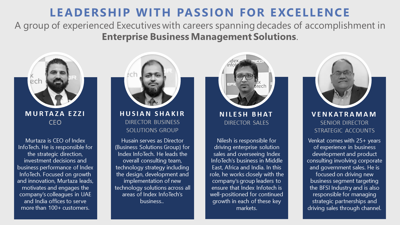 Murtaza Ezzi, CEO at Index InfoTech said “We are excited about our new website launch. Our new site will allow visitors to have a highly informative experience as we continue to grow and increase our market presence. With Epicor ERP, HCM and Farvision as our flagship products we are now expanding our solutions portfolio which includes ERP, HCM, ECM, IRM, GRC, MES, BI & Analytics, Robotic Process Automation (RPA), Voice based technology and Smart Automation.
