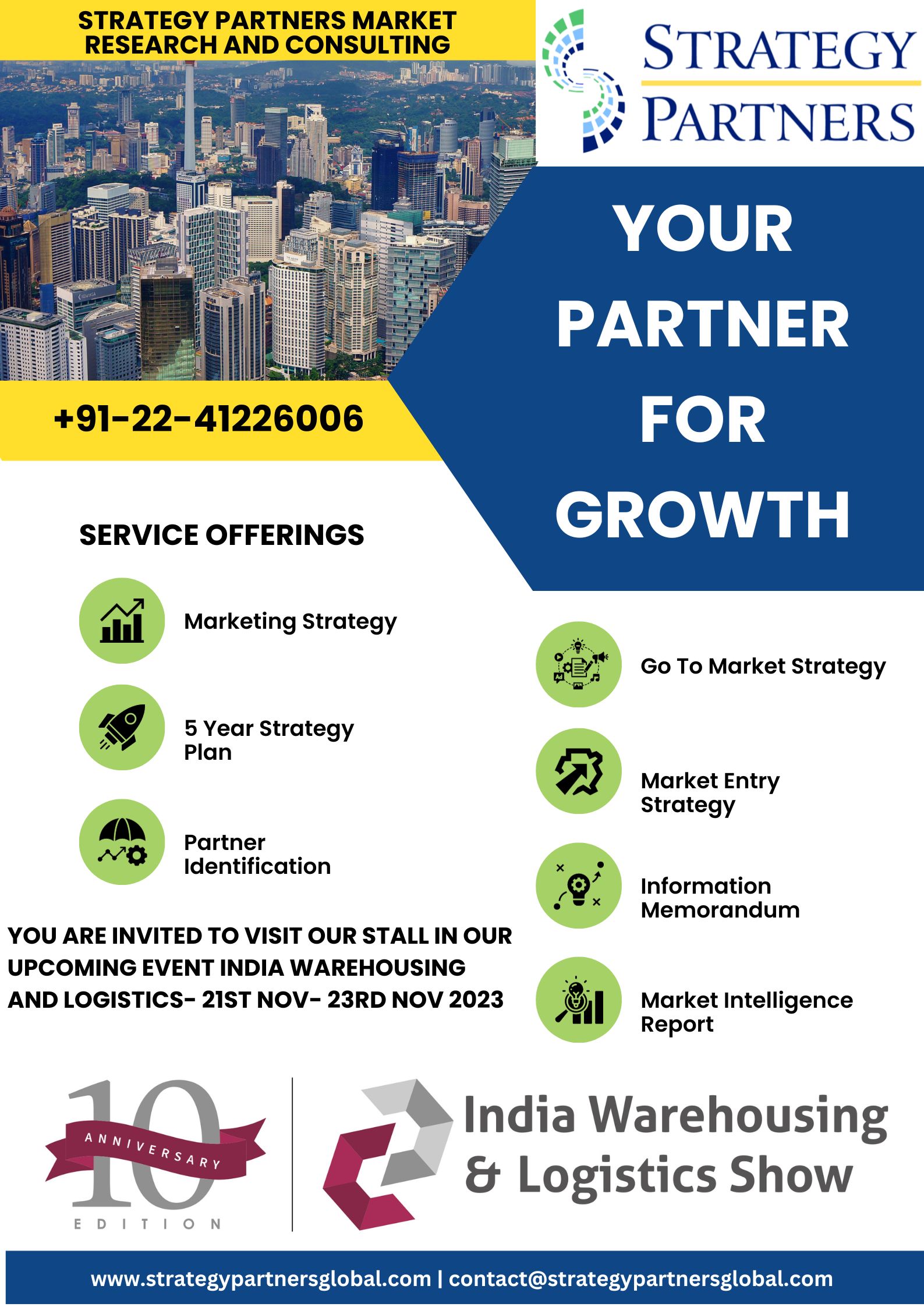 Strategy Partners Market Research and Consulting is a leading business consulting firm based out of India. It covers 19 industries, Warehouse and Logistics being one of them. The services offered by Strategy Partners include Market Entry Strategy, Marketing Plan, 5 Year Strategy Planning, Go To Market Strategy, Partner Identification for International market expansion and market intelligence.