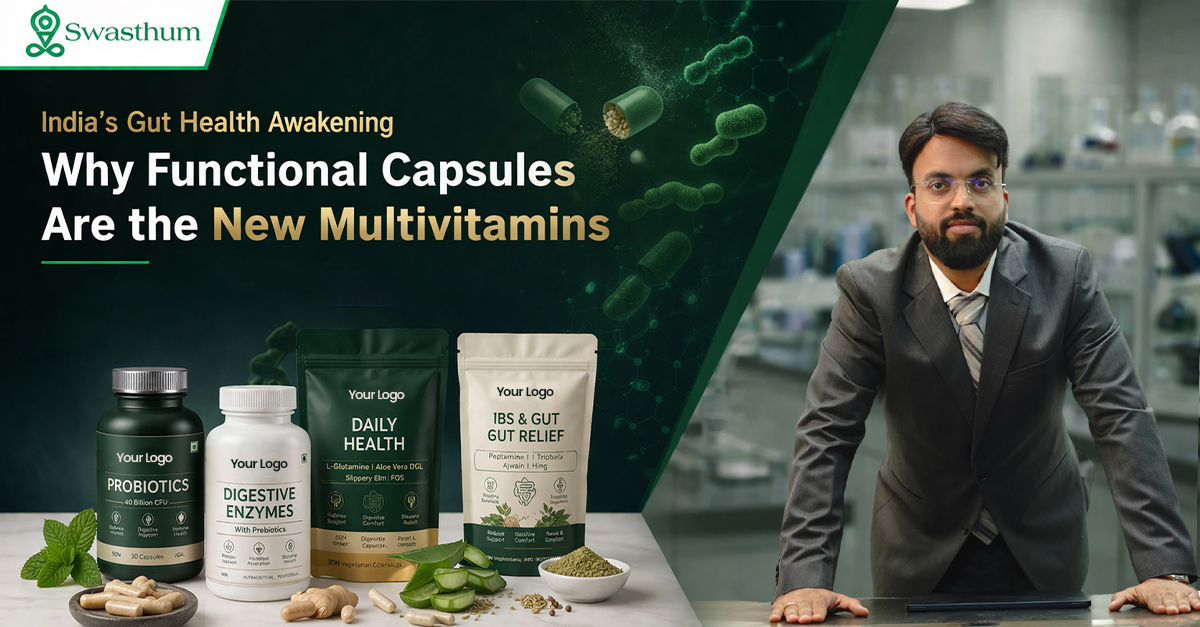 The gut is not simply another organ; it's the starting point of whole health. And thanks to Swasthum's revolutionary solution for functional capsules, Indian consumers now experience daily solutions beyond mere nutrition.