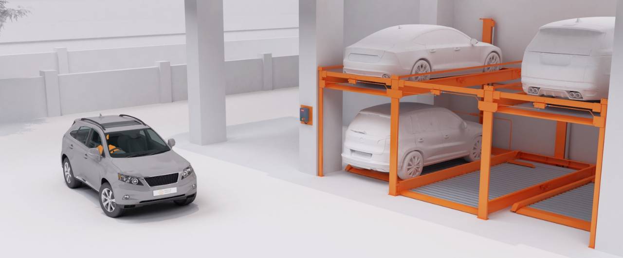 2015 is the best option for buildings with smaller heights in parking areas or open parking spaces. This system creates two parking spaces in the footprint of one car. A car on the lower platform needs to be driven out to retrieve the car from the upper platform.