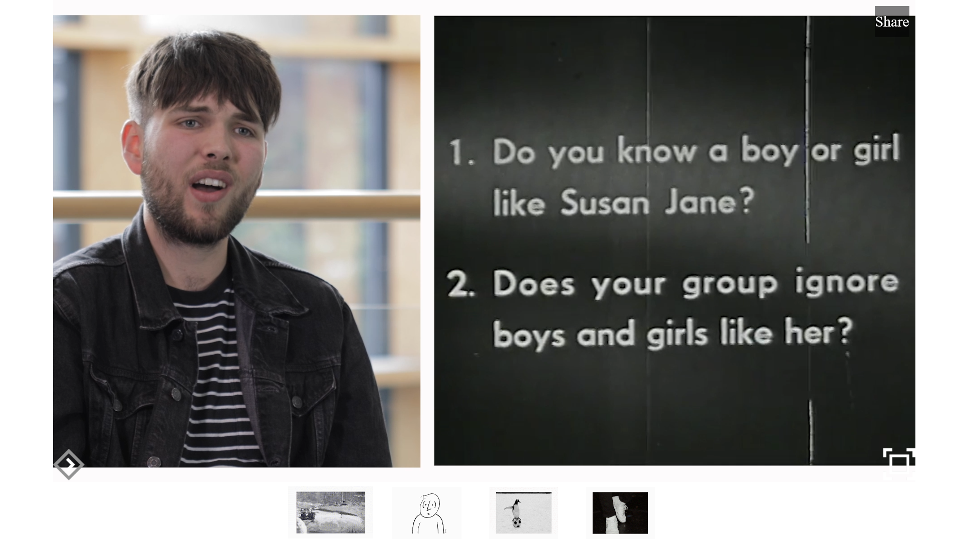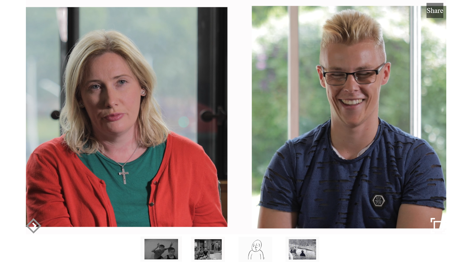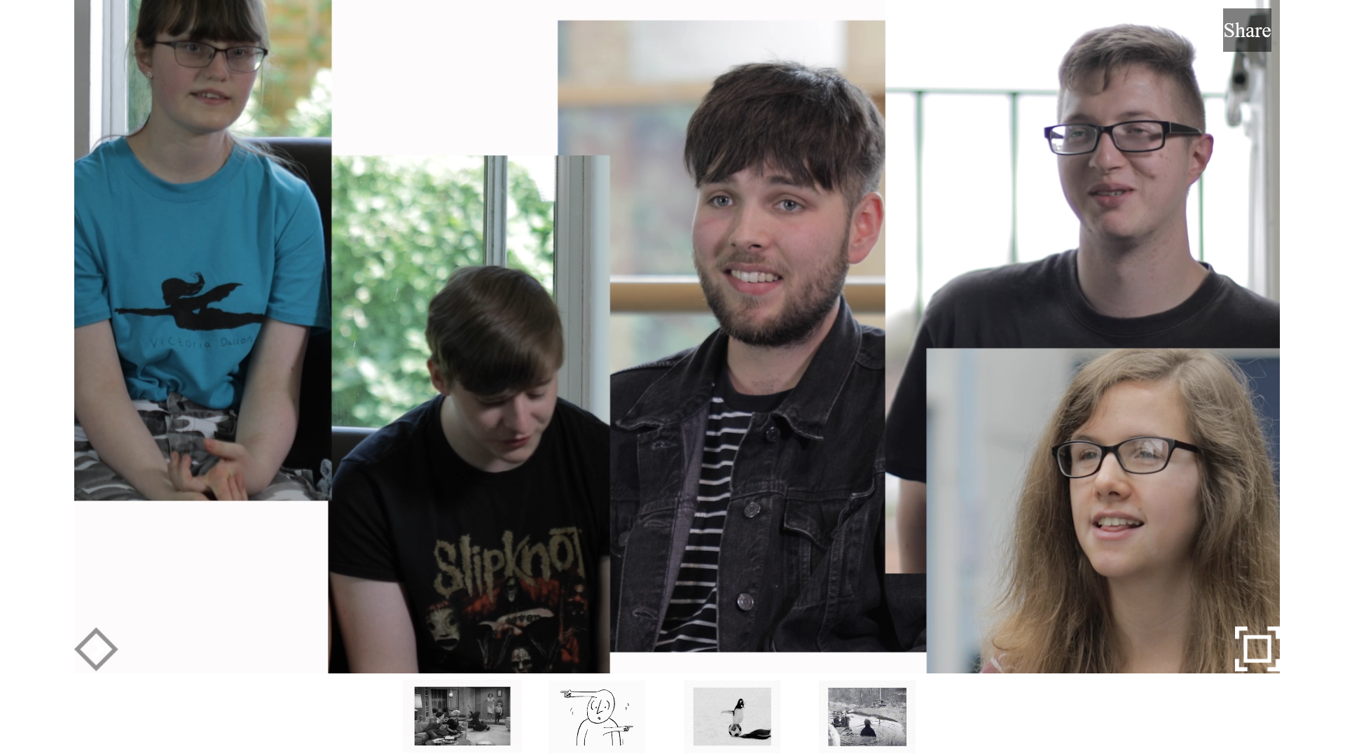 Don't Call Me Clumsy features about 70 minutes of polyvocal interviews, with scenes ranging in length from 1.5 to 5 minutes. Like a video game, viewers control the time it takes to navigate through the story arc. They might slip through its nonlinear maze and solve the mystery disorder quickly, or the reveal may take longer, depending on the order they select scenes. But even when the mystery is solved, unwatched scenes will still be available to view for those whose interest is piqued. Others preferring an abridged version can skip to a new scene at any point, making the one they’re on disappear from the menu. Of course, nothing is ever gone for good… when one returns to the site, they can choose to continue where they left off or reset the entire iDoc.