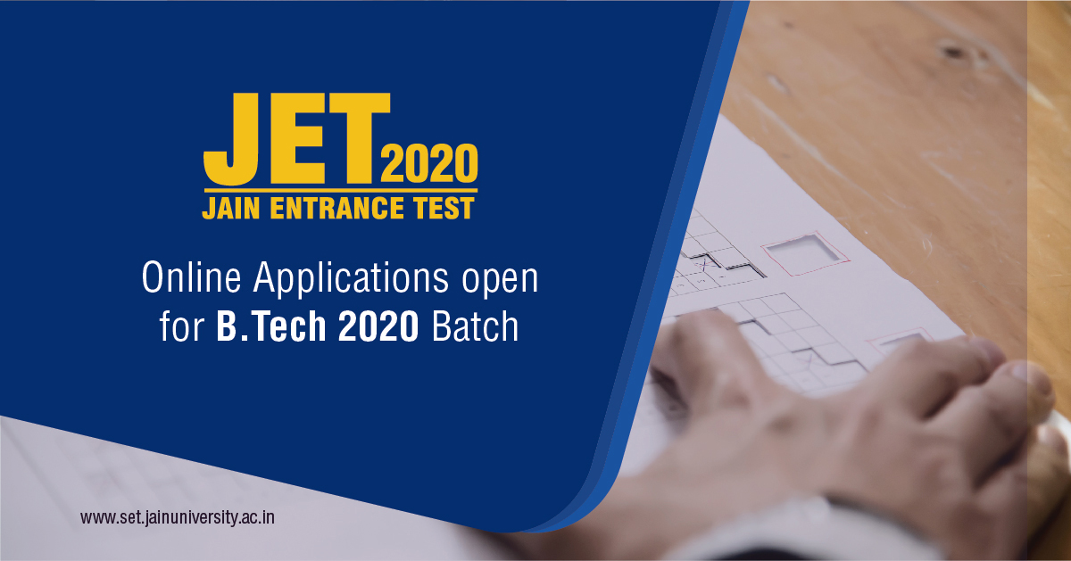 Jain (Deemed-to-be University) announced the date for Jain Entrance Test (JET) pertaining to B.Tech, UG and PG Programs for the Academic Year 2020. JET for PG Programs is scheduled on 19 January 2020 whereas UG JET is scheduled on 24 & 25 April 2020 and B.Tech JET on 26 April 2020, across multiple centers in India.