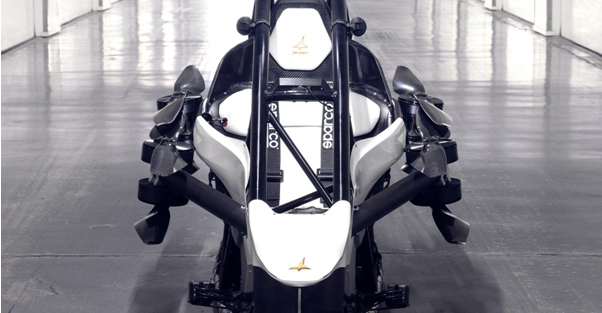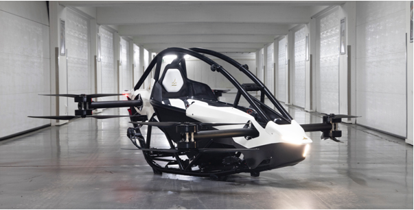 The Jetson ONE is constructed of a lightweight aluminum space frame and carbon-kevlar composite body. It is powered by eight electric motors, has a flight time of 20 minutes, reaching a top speed of 102 kilometers per hour (63 miles per hour). It runs on a high discharge lithium-ion battery and can carry a pilot’s weight of 210 pounds 100kg.