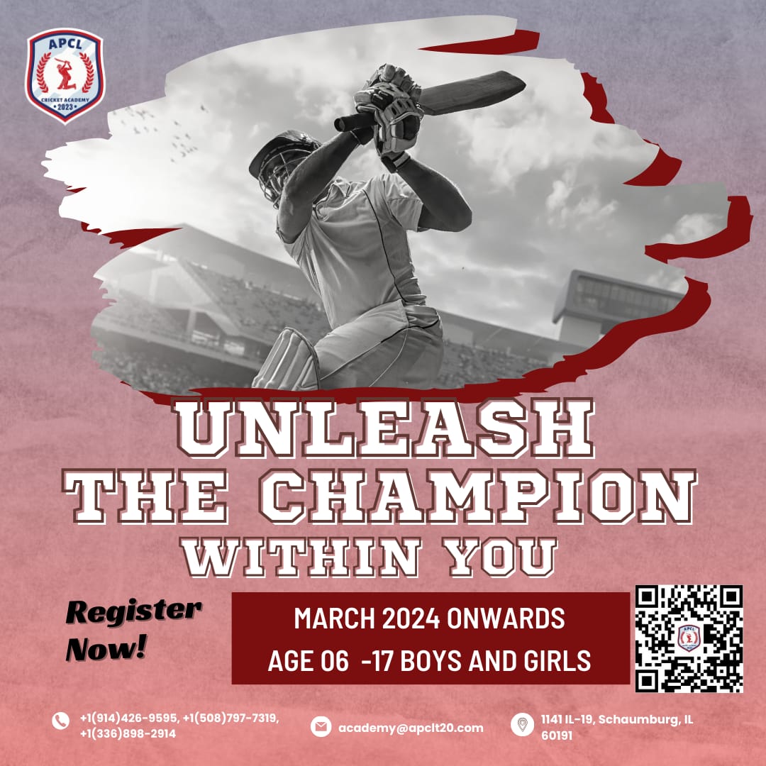 APCL Cricket Academy academy@apclt20.com 2521512053 Schaumburg, IL, United States https://www.apclt20.com/