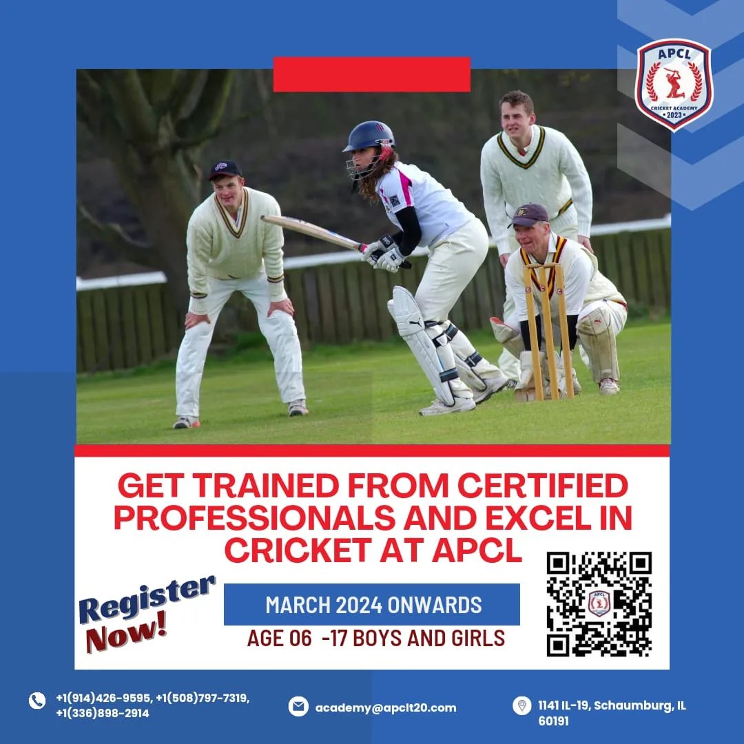 Schaumburg, Illinois Apr 12, 2024 (Issuewire.com) - Are you passionate about cricket? Do you dream of honing your skills and mastering the game? Look no further! APCL Cricket Academy is proud to announce its flagship cricket training program in Chicago, offering comprehensive coaching, state-of-the-art facilities, and a nurturing environment for aspiring cricketers of all ages and skill levels.