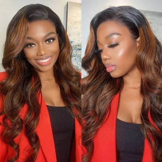 The texture of this wig is the classic body wave with brown highlights. The combination of natural black roots and brown hair will match all girls with different skin tones. Besides, the lace part of the wig is transparent lace, which will give you the most natural hair look. Customers can choose the length from 16 to 24 inches.