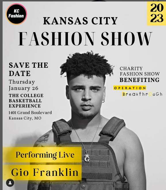 Gio understands the importance of community, he has already started his mission during the holidays by hosting a toy giveaway and providing meals in the community. He recently joined forces with The Kansas City Fashion show for charity. The event takes place at The College Basketball Experience 1401 Grand Blvd. Kansas City, MO 64106 January 26th 2023.