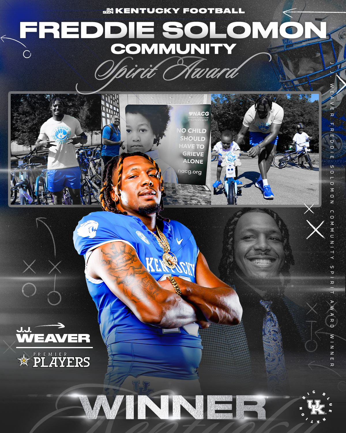 Tampa, Florida Jun 27, 2025 (Issuewire.com) - J.J. Weaver, a graduate outside linebacker for the University of Kentucky, exemplifies the spirit of community and resilience, earning him the prestigious 2024 Freddie Solomon Community Spirit Award. A native of Louisville, Kentucky, Weaver was born with polydactyly, a condition where he has six fingers on his right hand. As a child, he faced bullying for being different but refused to let it define him. His college years brought even greater adversity: he endured the tragic loss of his father to homicide, a season-ending knee injury, and the death of his high school coach to cancer—all within a span of 13 months.