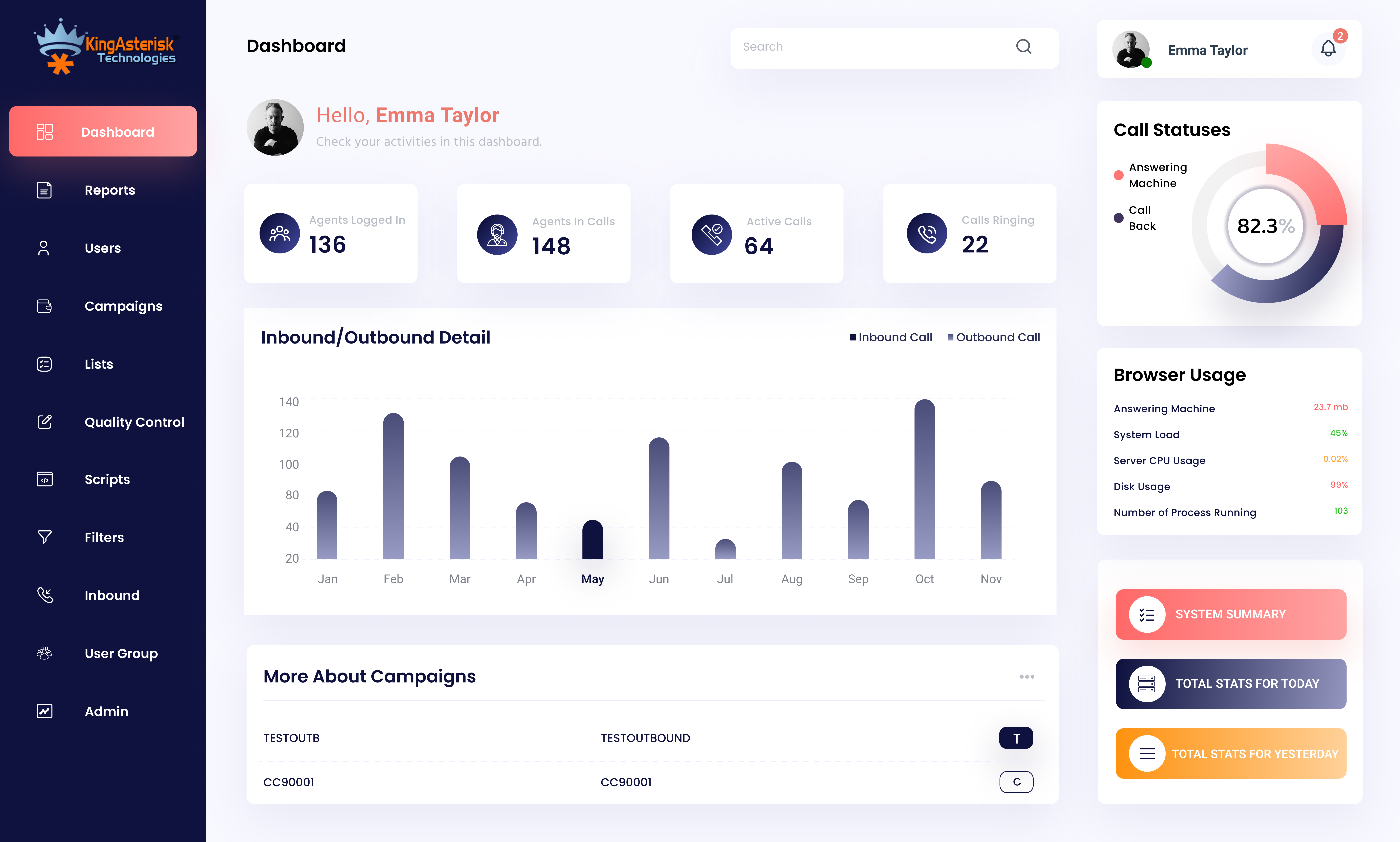 We at KingAsterisk Technologies are proud to be a leading force in the call center technology space, committed to enhancing communication and operational performance for businesses around the globe.