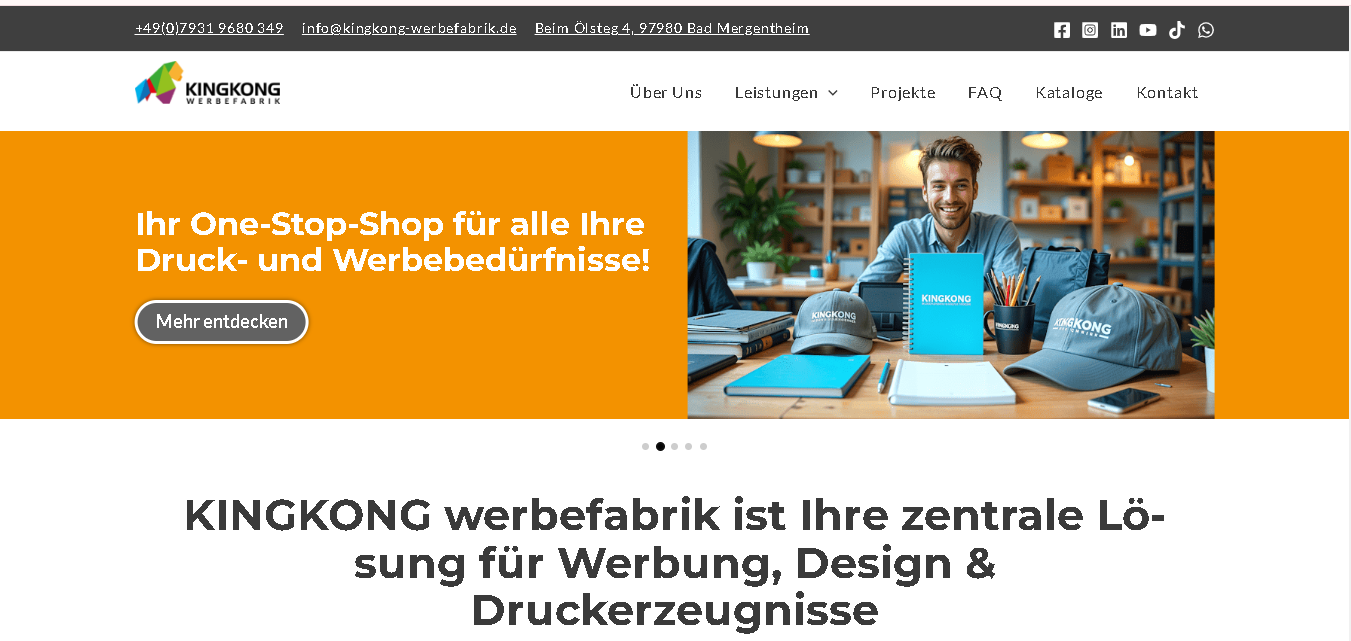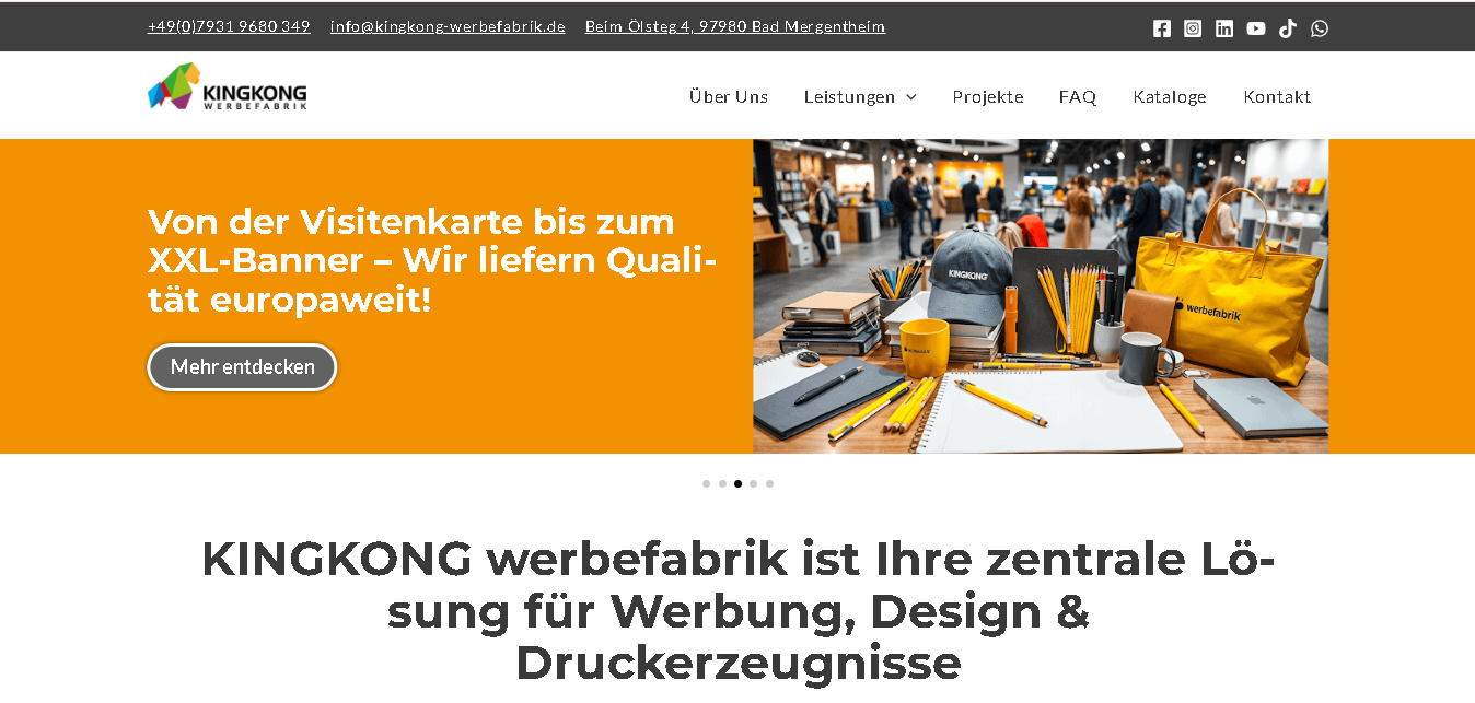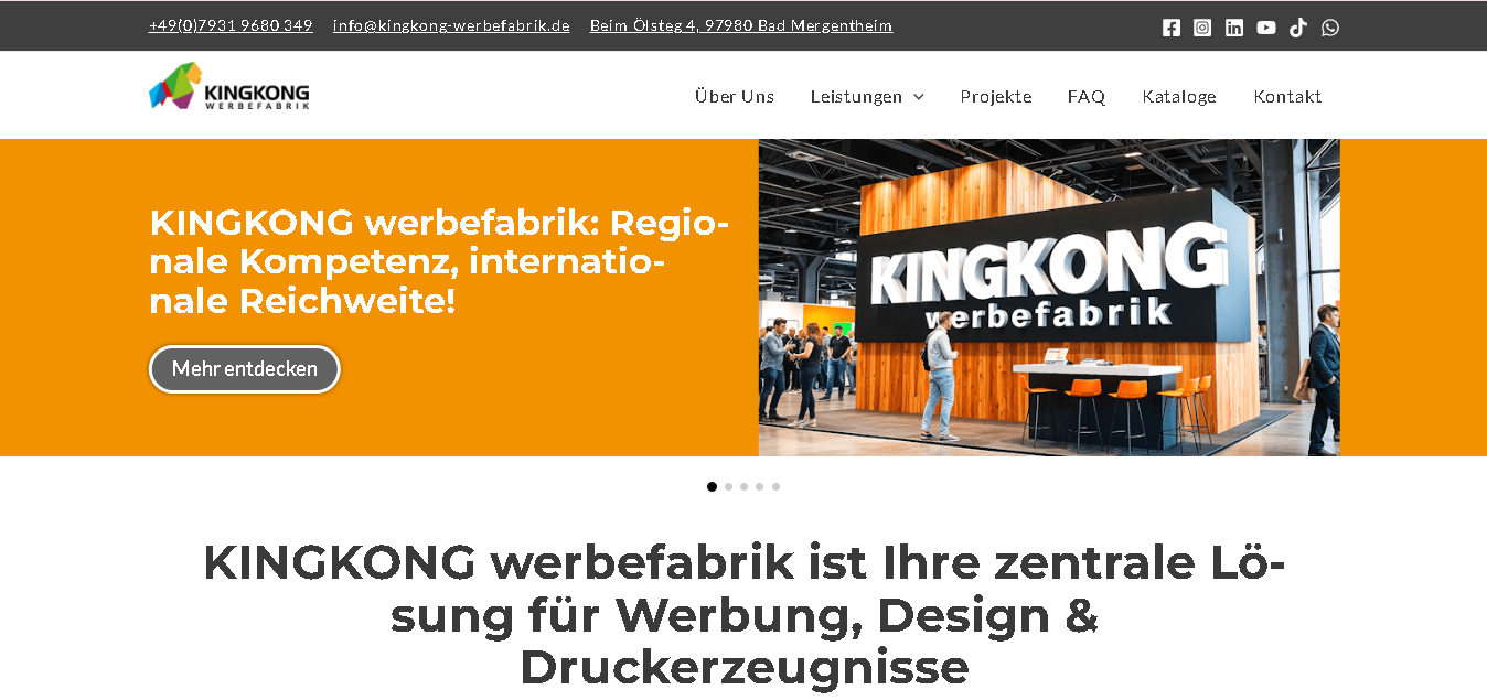 About KINGKONG Werbefabrik: Founded with the aim of providing high-quality and innovative solutions, KINGKONG Werbefabrik is a leading advertising agency based in Bad Mergentheim. It is known for its innovative offerings such as print advertising examples and Logo the Werbefabrik. Their skilled employees help brands reach new heights through innovative print and advertising media.