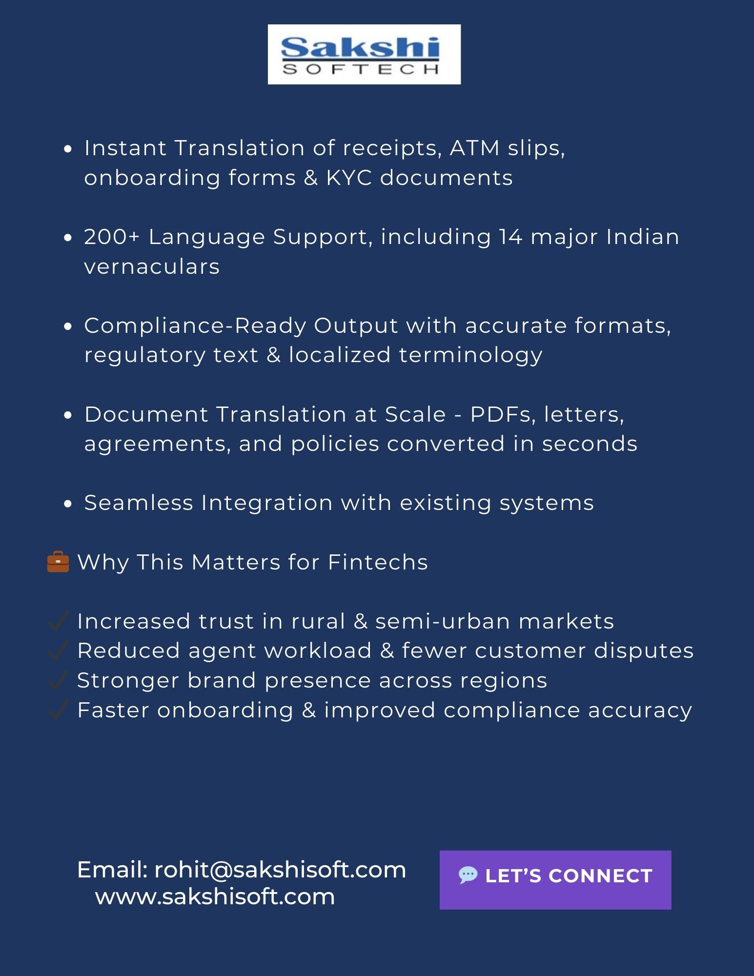 Localized onboarding journeys, loan letters, statements, KFS documents, and mobile banking apps - instantly and accurately.