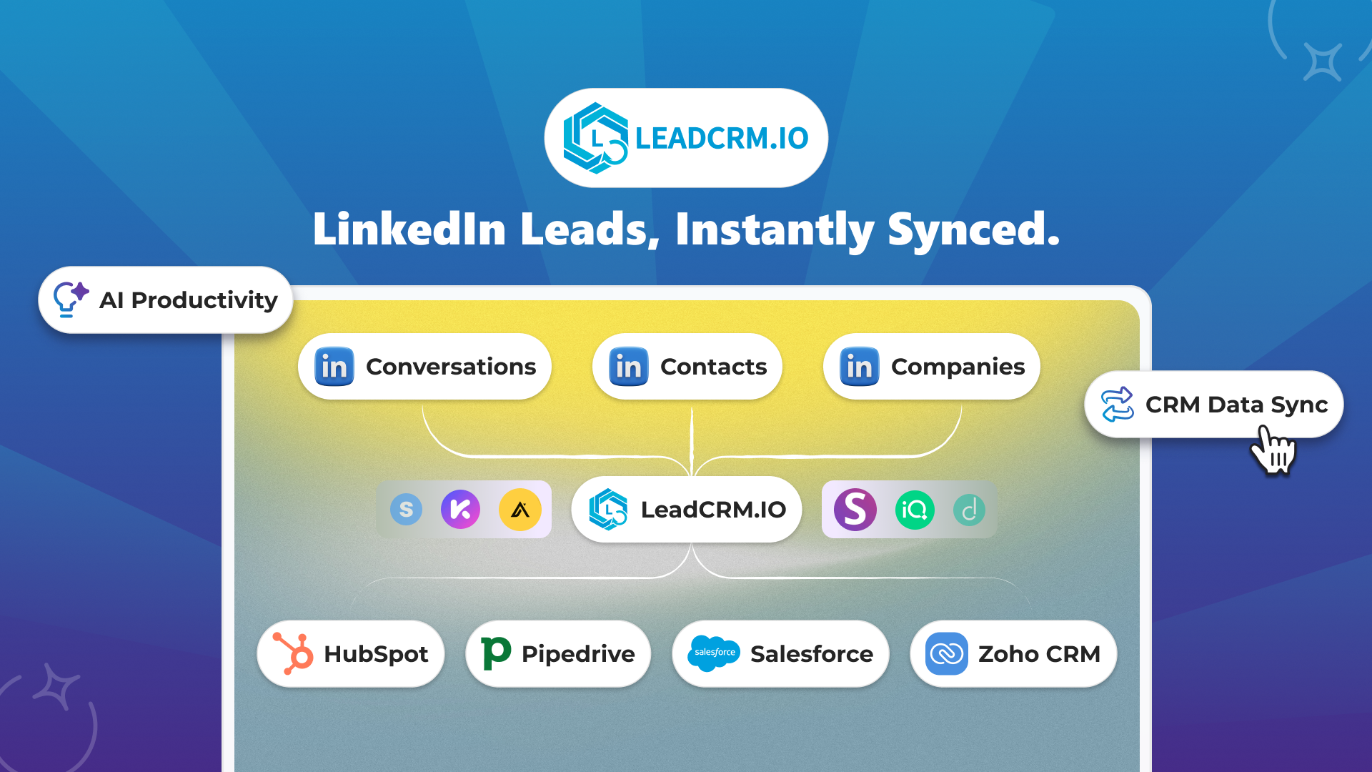 LeadCRM is a prospecting productivity platform that helps go-to-market teams connect social selling with their CRM-without the busywork. Built for BDRs, AEs, and RevOps, LeadCRM streamlines the handoff from Social Selling platform to modern CRMs like HubSpot, Pipedrive, Zoho, Copper & more with simple, reliable, one-click workflows that keep data clean and teams moving fast.