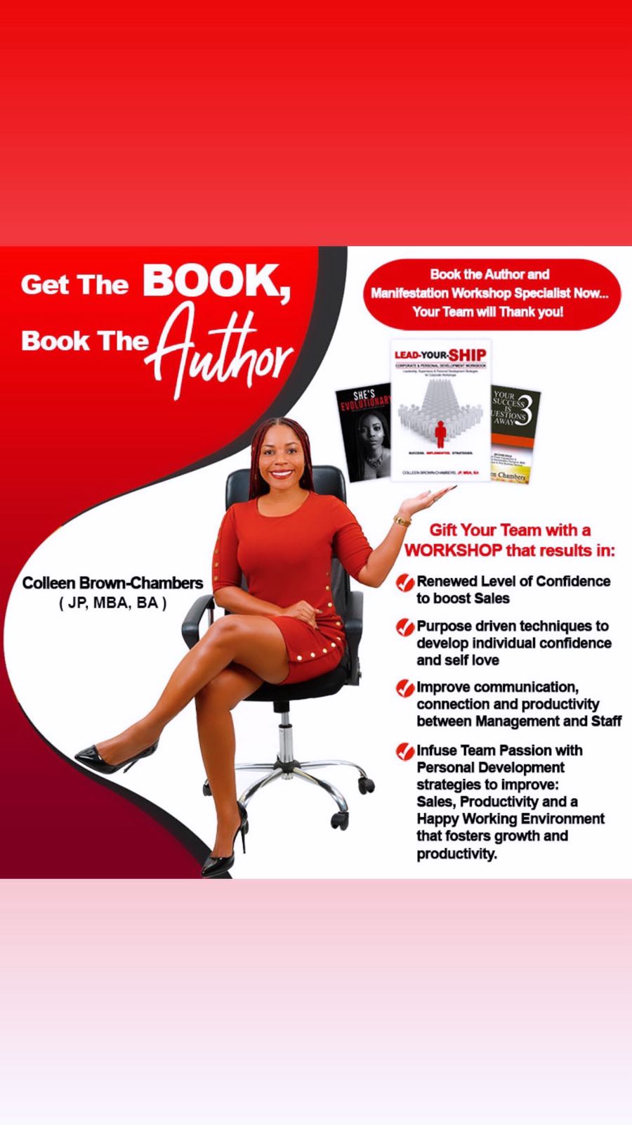 Her second book ‘She’s Evolutionary’ which is a personal self-development poetry book has been relaunched and available just in time for Women’s History Month. The third and latest book ‘Lead-Your-Ship Workbook ‘ targets business owners and corporations by providing strategies, techniques, and systems to help improve Leadership, Customer Excellence and Personal Development holistically will also be released in 2024.