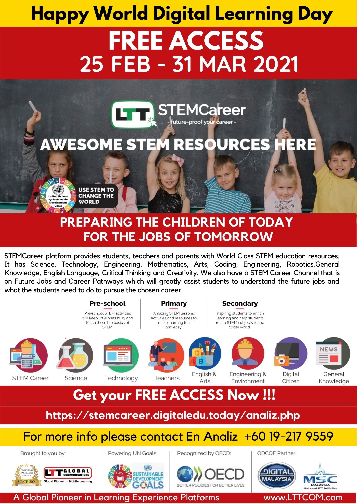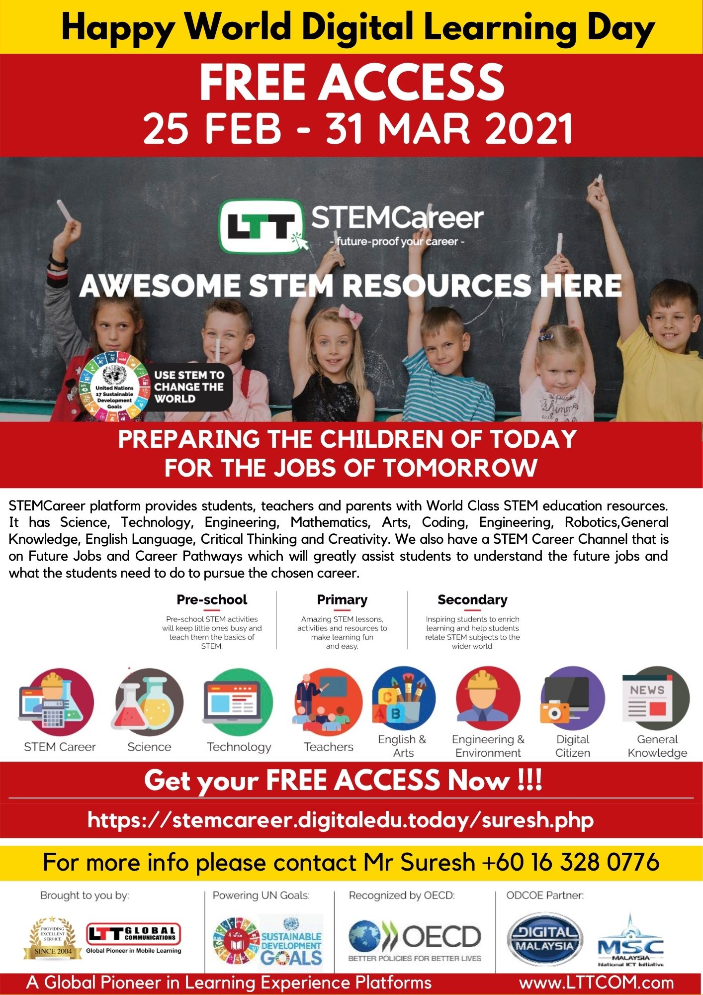 Kuala Lumpur, Malaysia Feb 27, 2021 (Issuewire.com) - LTT Global announced its “Be Future Ready,” a Global Campaign inline with Digital Learning Day’s theme this year; Together, We're Better, Together, We're Future Ready. LTT Global's Campaign offers Students, Teachers, and Parents to enjoy free access until 31st March 2021 to LTT Global’s STEM Career learning platform.