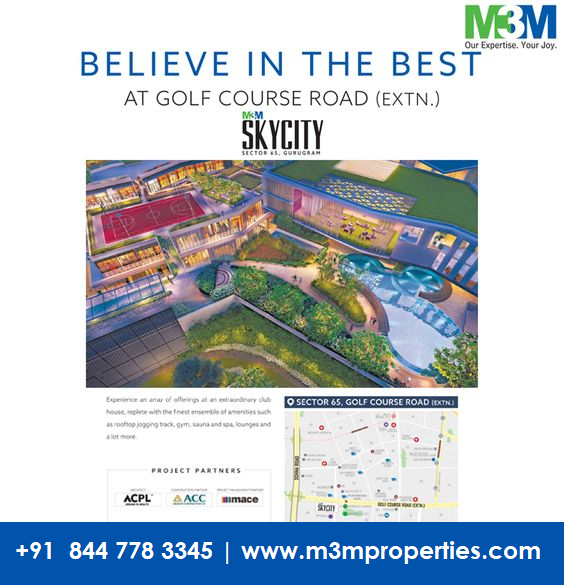 Gurgaon, Haryana Apr 22, 2021 (Issuewire.com) - M3M Sky City is the most energetic adaptation of a metropolitan encounter. M3M Sky City and M3M Heights projects are situated in Sector 65 on Golf Course Extension Road Gurgaon. M3M Heights/Sky city is essential for the 14.5 sections of land (approx.) of Mixed Land Use Development. The Development settled in one of the biggest High Street Retail Commercial complex M3M 65th Avenue in Gurgaon coordinates the accommodation of being near a business complex consistently with every one of the advantages and conveniences of a townhouse living. M3M Skycity Sector 65 plan idea guarantees that its occupants will appreciate the comfort, way of life components and security includes that the world has generally expected from all the superior lodging improvements being conveyed by the Group.