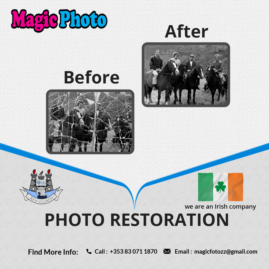 Restoration of old photos which get damaged may be for any reason is great news for the savers of memories and love. Don’t let memories fade away that easily, Magic Photo Gifts can help anyone with photo restoration in Dublin to bring their photos back into life. Whether someone wants to restore, repair, or retouch, they compose their image together with relevant background changes from black to white colour. They provide collages, montages, and expertly resort their client’s picture. They have in the personalisation and photo restoration businesses for 30 years. They professionally revive anyone’s photograph using their photographic skills, state-of-the-art hardware, and software so that any individual’s next generation can enjoy it to the fullest.