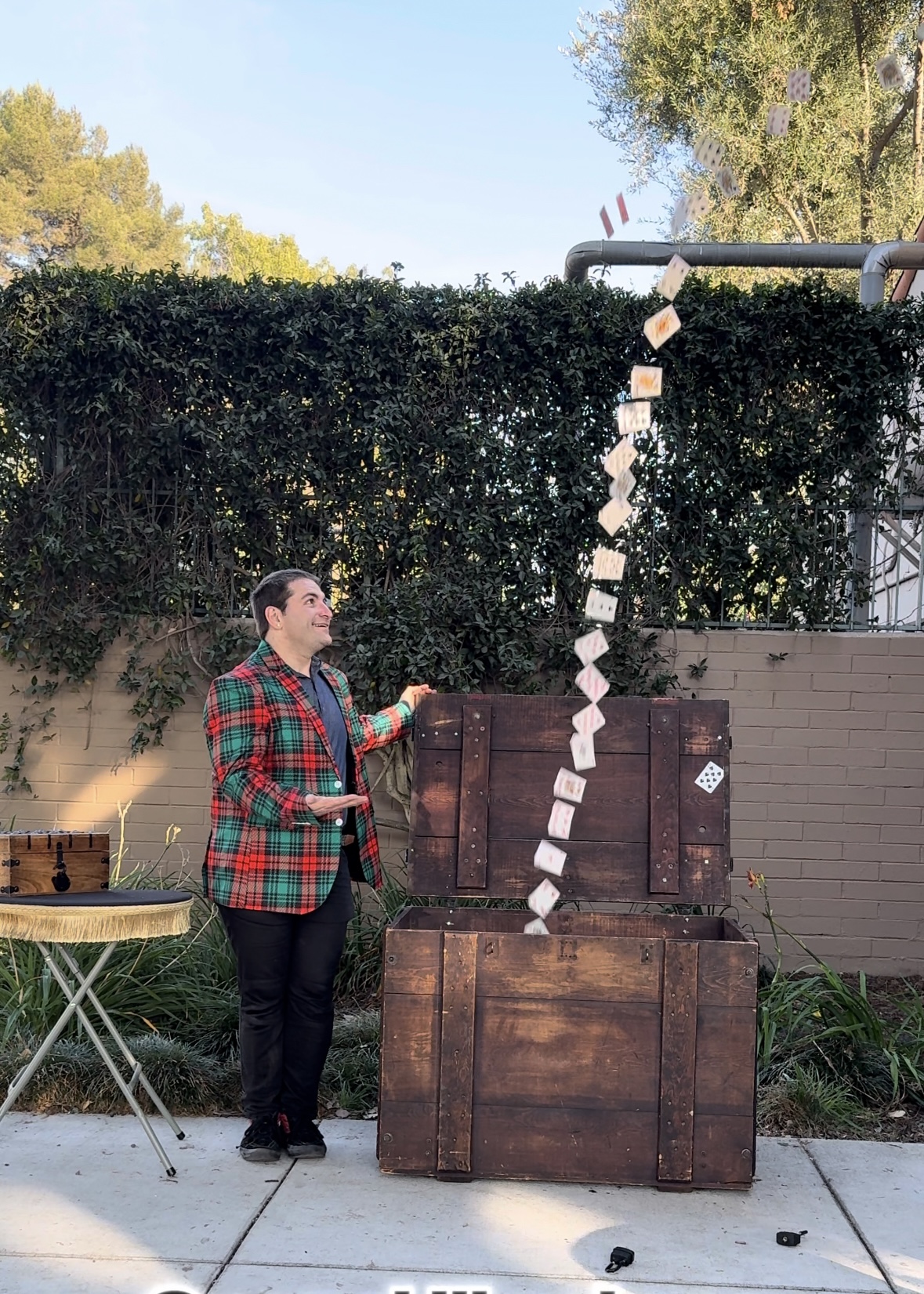 Prior to that he was in the U.S. Army and received two college degrees. He’s been doing card illusions since his father showed him a deck of cards on a family road trip outside a Cirque du soleil acrobatic show on the Las Vegas strip. Now he also does mentalism, stage illusions, corporate speaking. and professional emcee services.