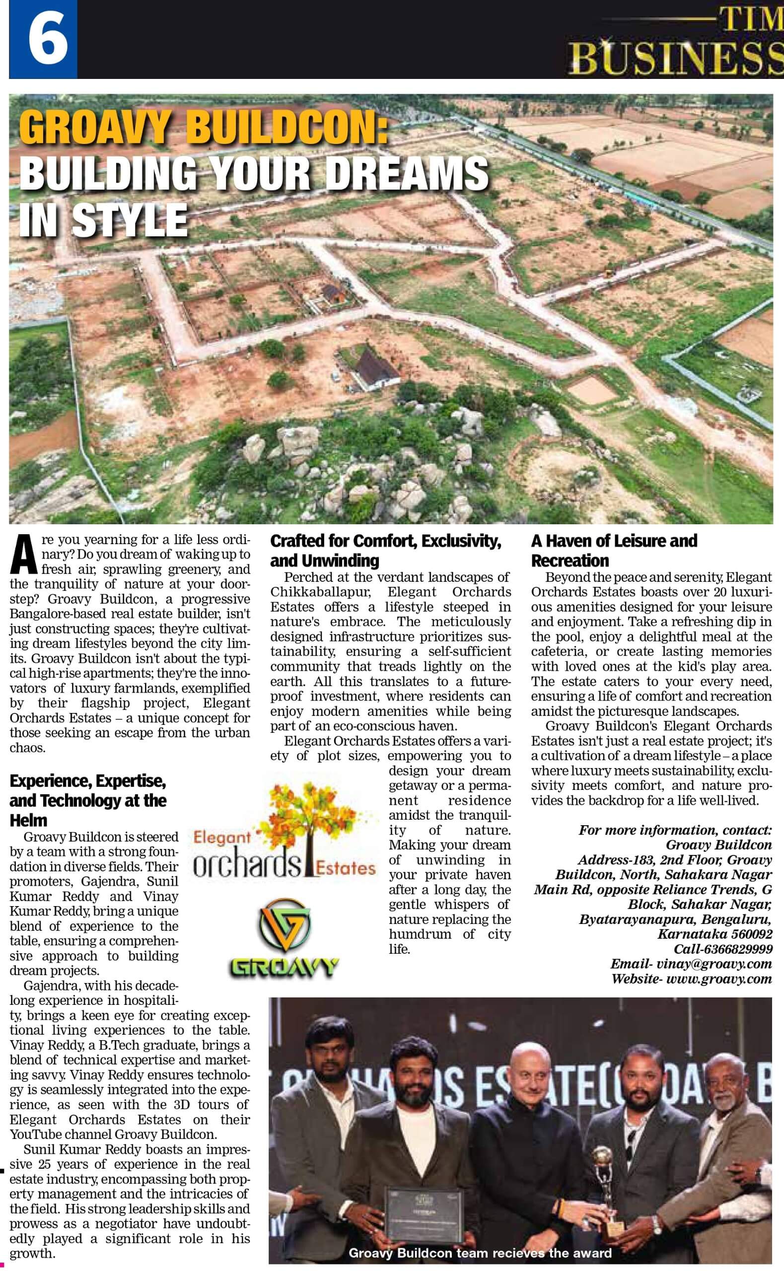 Bengaluru, Karnataka Aug 27, 2024 (Issuewire.com) - Elegant Orchards Estate Farmland by Groavy Buildcon – Your Gateway to Sustainable Living Near Chikkaballapur, Peresandra, Priced at Just ₹549 Per Sq. Ft.